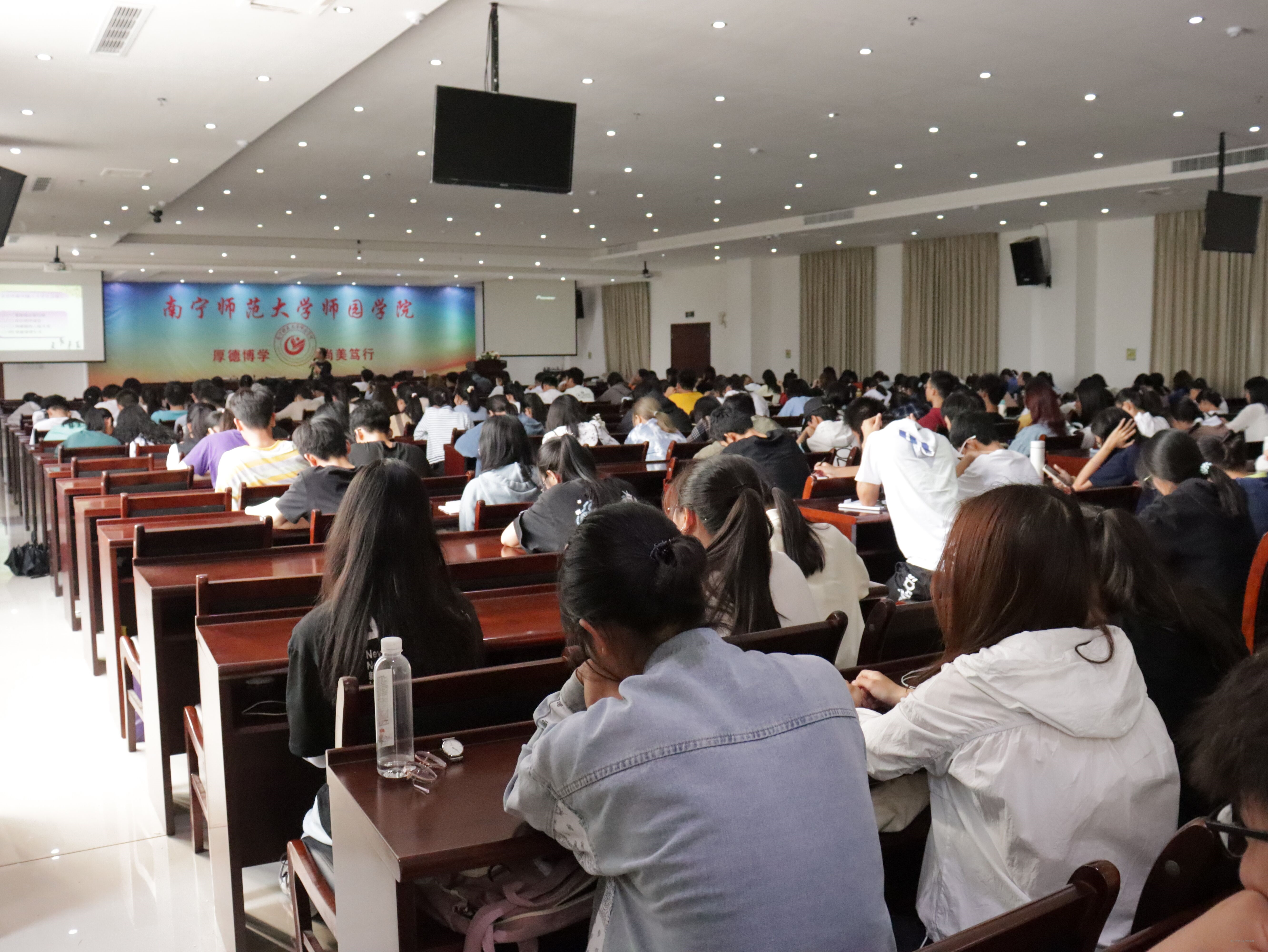 讲座上,谢永山老师首先以PPT形式为新生展现了大学与中学相比,在生活环境、学习要求和社会活动发生的变化,并要求各班心理委员做好引导工作,帮助同学们适应新环境,做好学业规划,提升自身综合素质。谢永山老师与大家讨论了大学新生的主要矛盾与困惑,就如何度过大学,怎样融入大学生活、怎样做好经济适应等问题进行解答。最后,谢永山老师与现场的同学进行交流,并送上自己对新生的美好祝福。