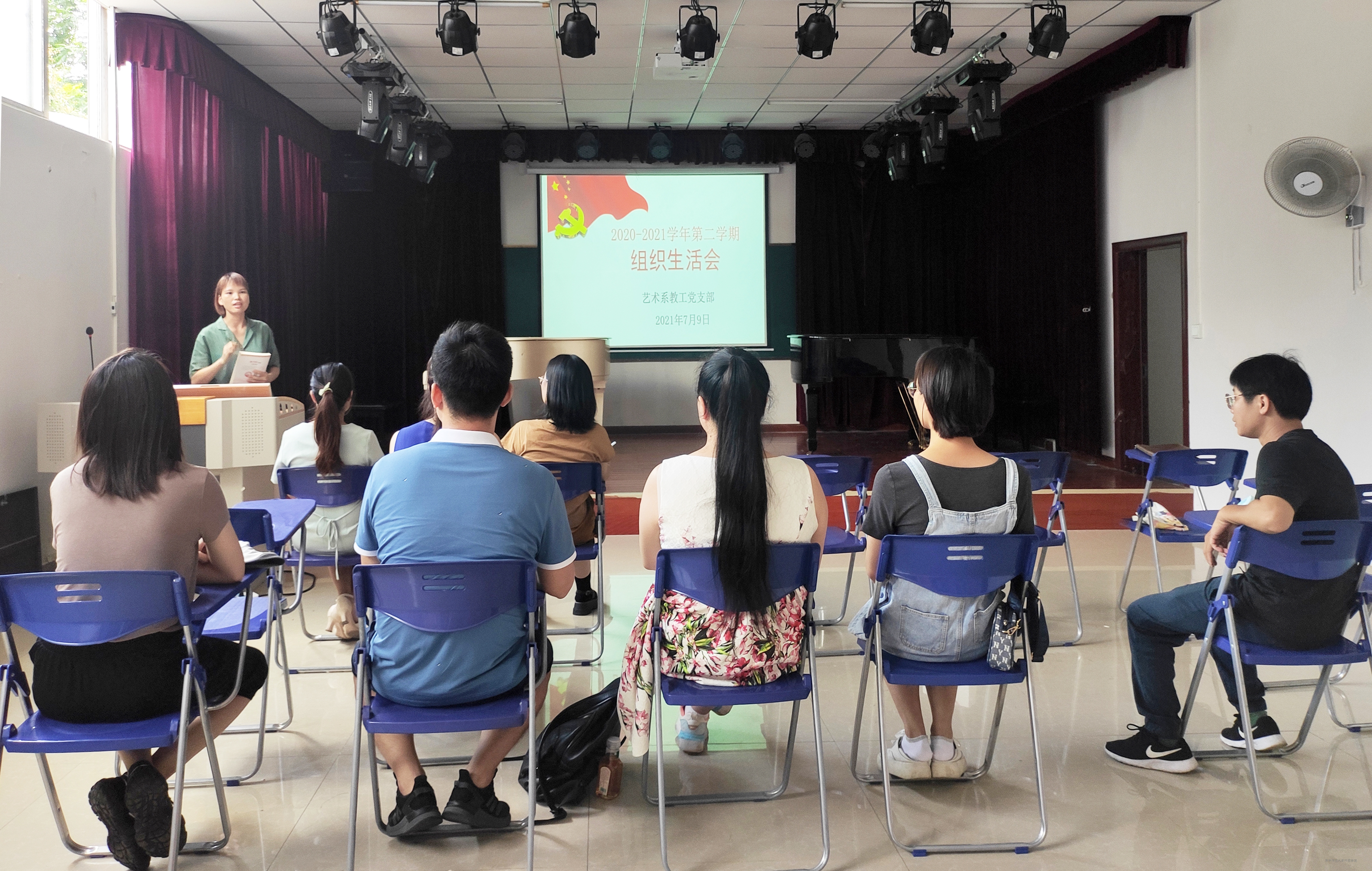 7月9日,艺术系教工党支部在8-105教室召开组织生活会,艺术系教工党支部全体党员参加会议。