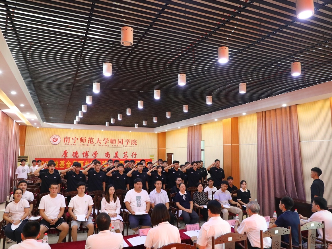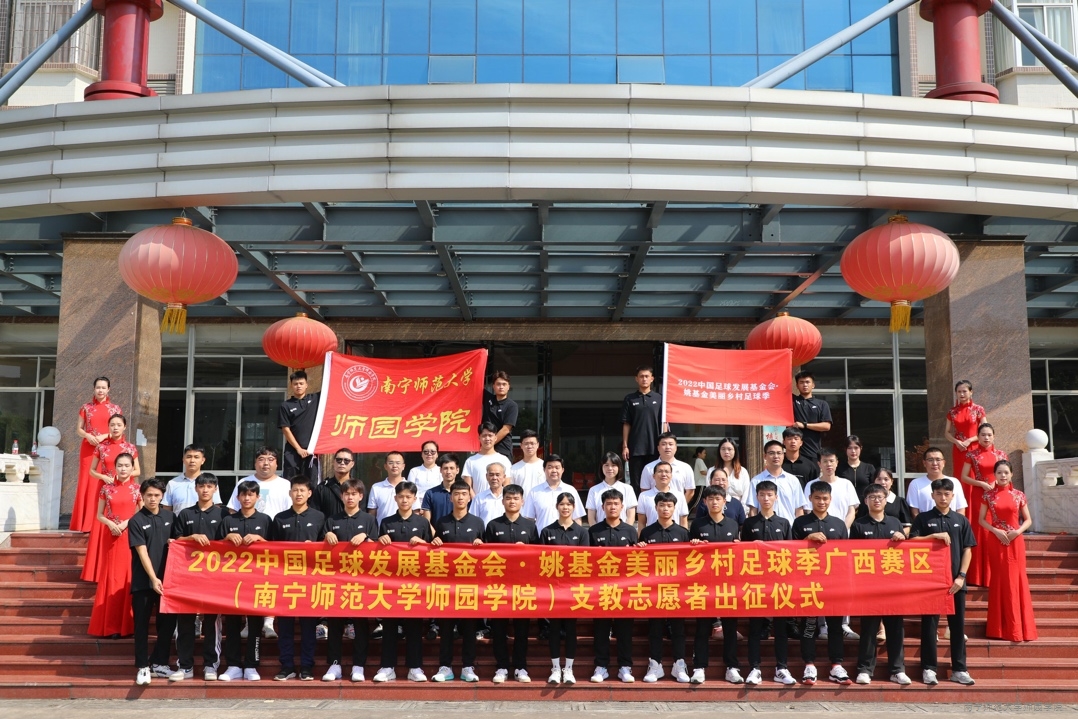 出征仪式上,广西青少年发展基金会秘书长苏瑜为我院授予志愿者旗帜。全体志愿者庄严宣誓,正式拉开了本次“2022中国足球发展基金会·姚基金美丽乡村足球季”的序幕。我院将以此活动为契机,团结带领广大师园青年深入基层,帮助更多乡村地区的孩子圆梦绿茵场,向社会传递正能量,以实际行动献礼党的二十大。