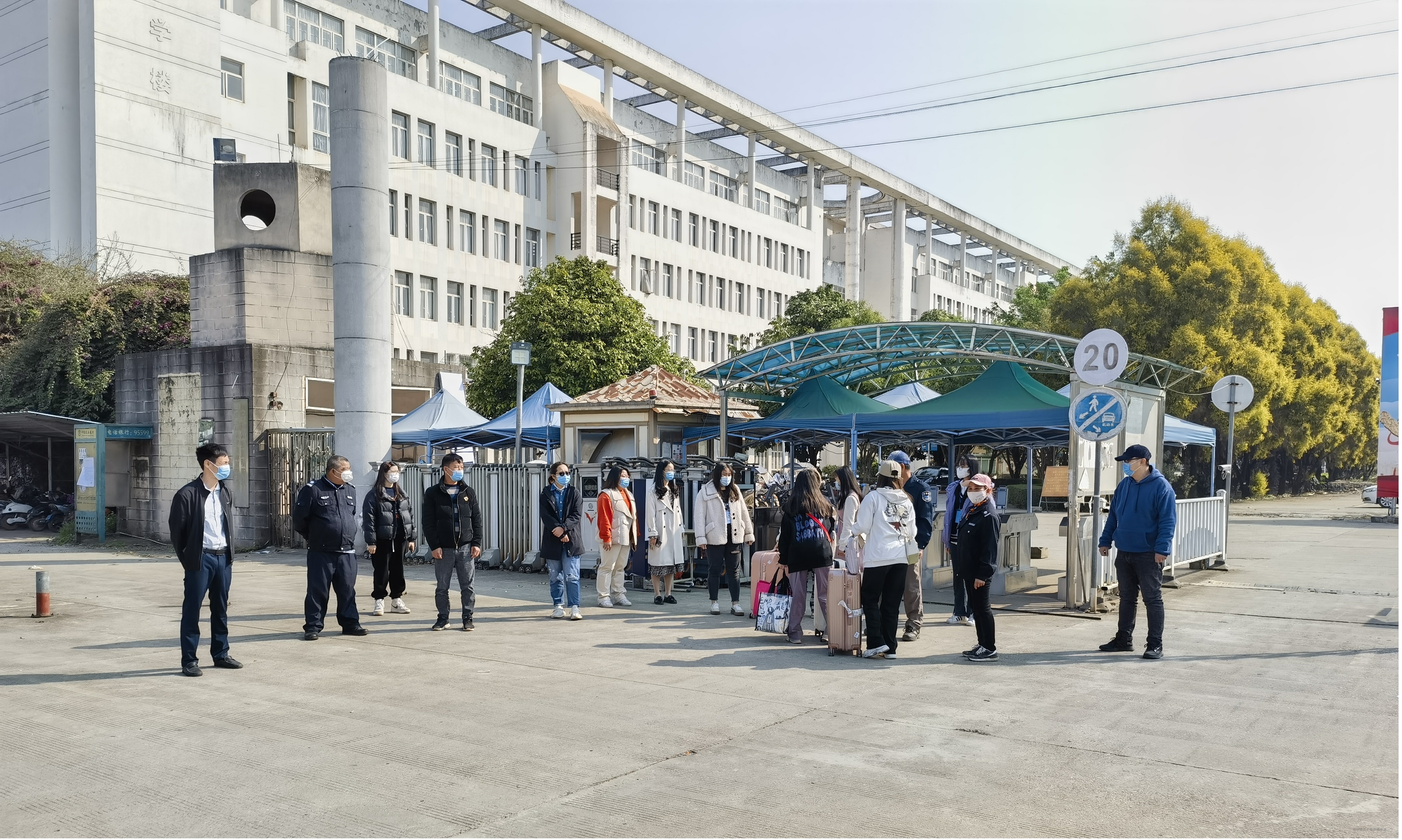 李剑喜常务副院长驻守校门指挥部署学生返校工作,并慰问现场工作人员