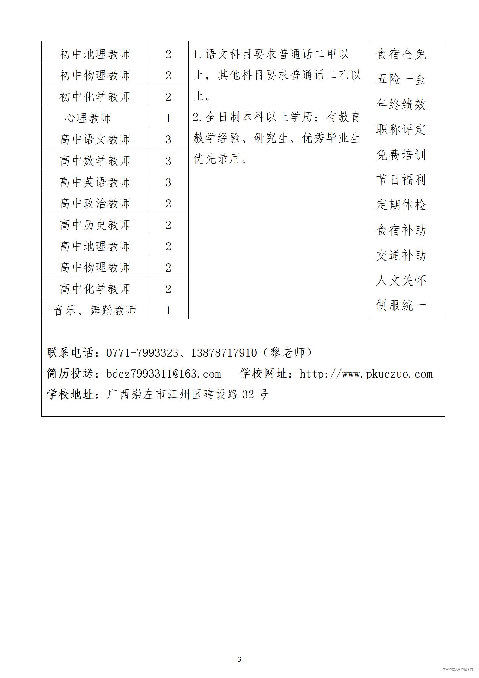 崇左青年北附实验学校招聘启事