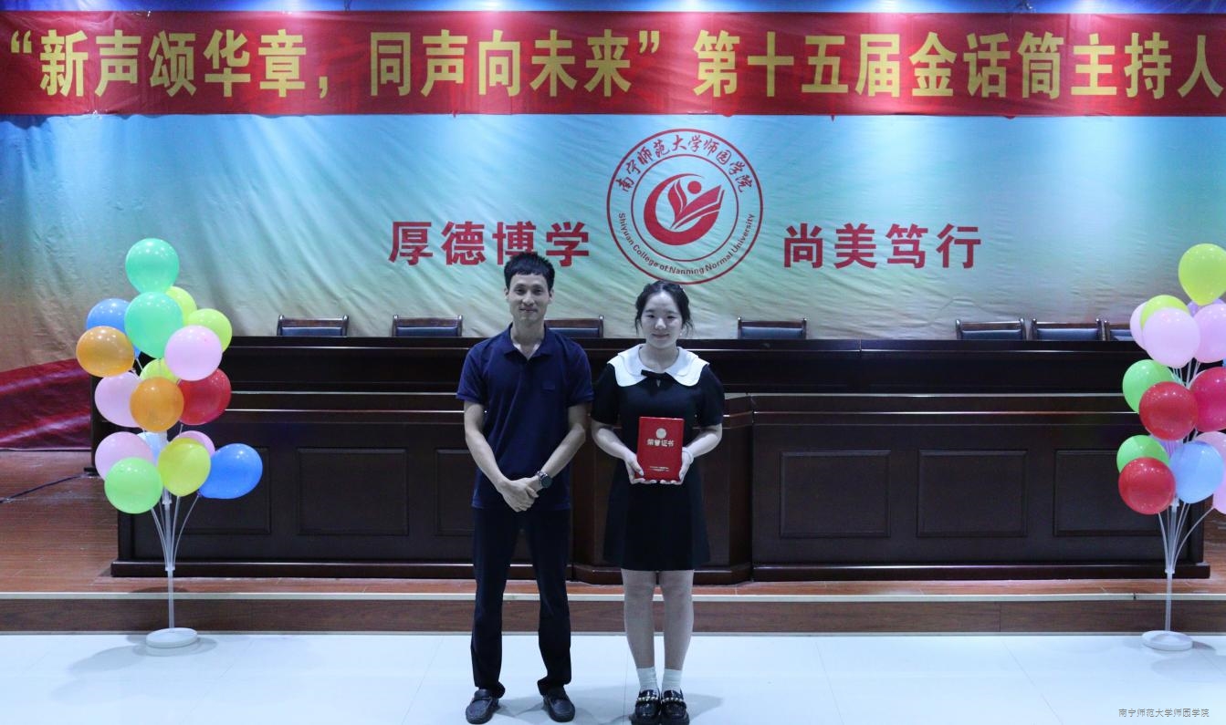 6月7日晚,由我院团委主办、院学生会承办的“新声颂华章,同声向未来”第十五届金话筒主持人大赛,在图书馆6楼第一报告厅圆满结束。学院党委学生工作部部长叶栋,中文系主任刘昌海,团委书记韦博文,各系团总支书记及师生代表出席参加本次比赛。