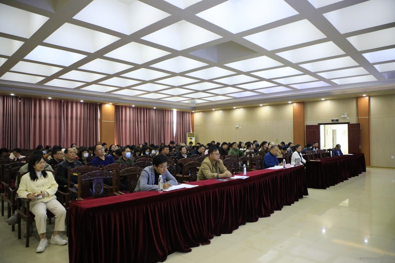 唐高华副书记以“强师风、铸师魂-奋力推进中华民族伟大复兴”为题展开专题讲座,他结合党的二十大精神和习近平总书记关于师德师风建设重要指示批示精神的学习阐述了强师风、铸师魂的重要性和必要性,从教育事业对我国推进中国式现代化强国战略、复兴伟业的基础工程、德政工程作学习阐释和分析,强调高校要以习近平总书记指出的“要坚持不懈用新时代中国特色社会主义思想铸魂育人,着力加强社会主义核心价值观教育”为指导,把学校的师德师风建设工作深耕细作,使我们充分认识到教育强国建设新征程中我们做好师德师风建设工作的职责所在。同时,唐高华副书记指出在高质量发展的新征程上,作为新时代高校教师要在坚定理想信念、陶冶道德情操、涵养扎实学识、勤修仁爱之心上筑牢立德树人之魂,教导教师应该用心、用情、用力去温暖学生,去服务学生。希望广大教师立志鸿鹄,发扬敢于挑战不可能,敢于向困难说不,敢于自我革新的“三敢精神”,勤奋耕耘、努力实践,为中华民族的伟大复兴而努力奋斗。