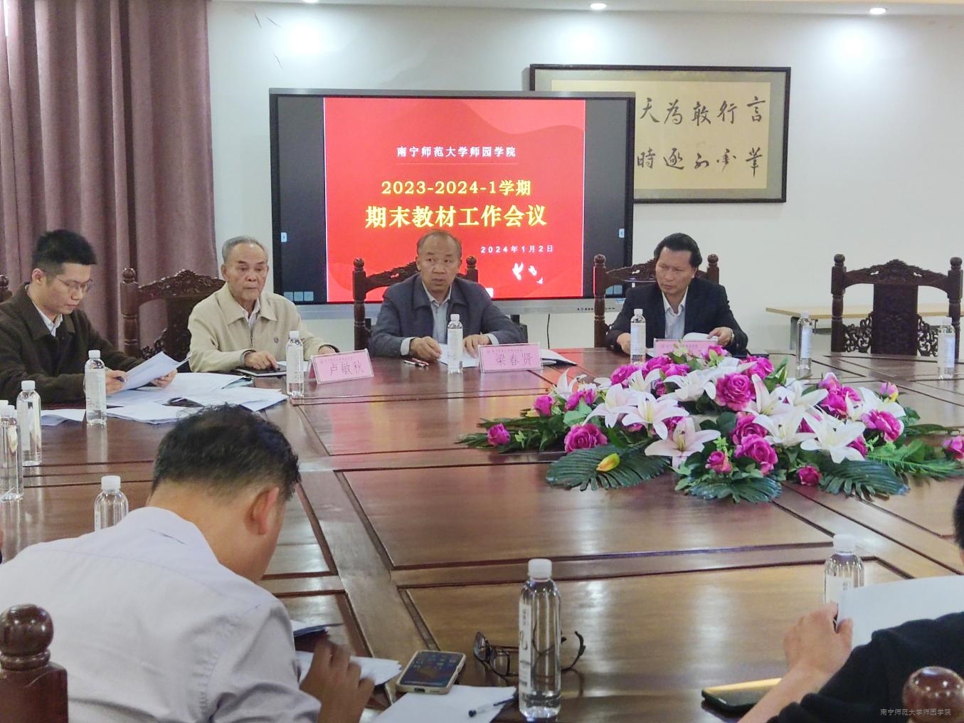 1月2日下午,我院在行政综合楼1002会议室召开2023-2024-1学期期末教材工作会议。学院党委书记梁春贤,副院长李德正,教学总督导卢敏秋及教材审查委员会全体成员、教务处相关工作人员参加会议。会议由教务处处长卢洋主持。