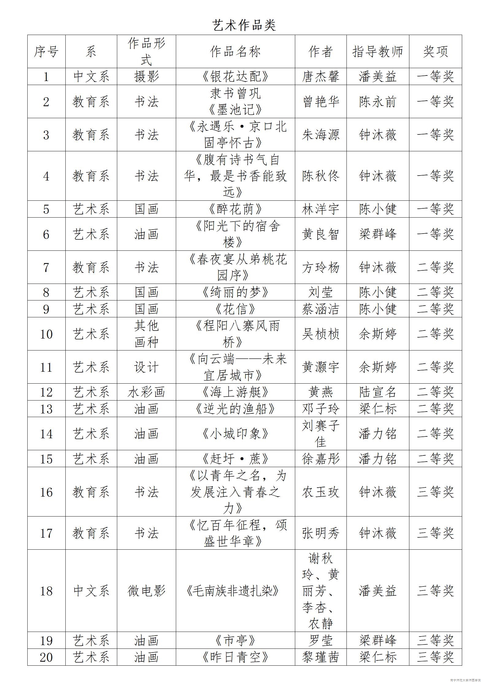 近日,广西第七届大学生艺术展演活动获奖结果揭晓,我院师生在此次活动中共斩获36项大奖,其中包括一等奖7项,二等奖14项,三等奖14项,以及广西第七届大学生艺术展演活动优秀组织奖。