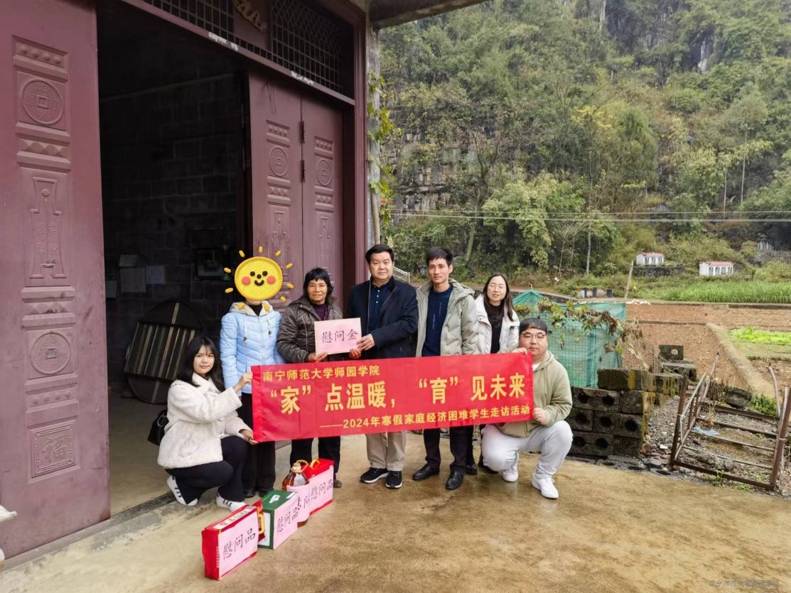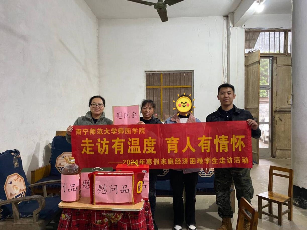 为全面贯彻落实党的二十大精神,深入贯彻乡村振兴战略思想,进一步宣传落实国家、学院资助政策,提升资助育人工作成效,促进家庭教育与学校教育的有效衔接,形成学校、家庭、社会三位一体的育人合力。1月11日至1月16日,学院党委副书记、常务副院长李剑喜带领学生工作部(处)负责人、学生资助管理中心老师及相关辅导员一行十余人分组深入广西玉林市、贵港市、钦州市、崇左市、桂平市、河池市等地走访慰问了14名学生,把党和国家及学校的关怀、老师的关爱送到学生家里。