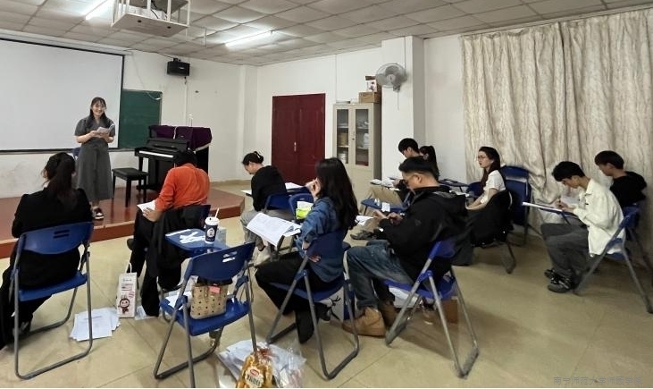 本次毕业论文答辩共分为4个小组,各答辩小组分别在15-101、15-103、15-108、15-109教室举行。答辩流程分为学生个人陈述和教师提问两个环节。参与答辩的学生依次对本人毕业论文题目、摘要、关键词、目录、正文内容等多方面向答辩老师进行了陈述。答辩老师围绕学生的毕业论文内容进行提问,主要考查学生是否掌握基础教育阶段的音乐理论知识和基本技能。随后,答辩老师根据学生的回答实际情况,有针对性地提出具有建设性的意见和建议,使同学们受益匪浅。
