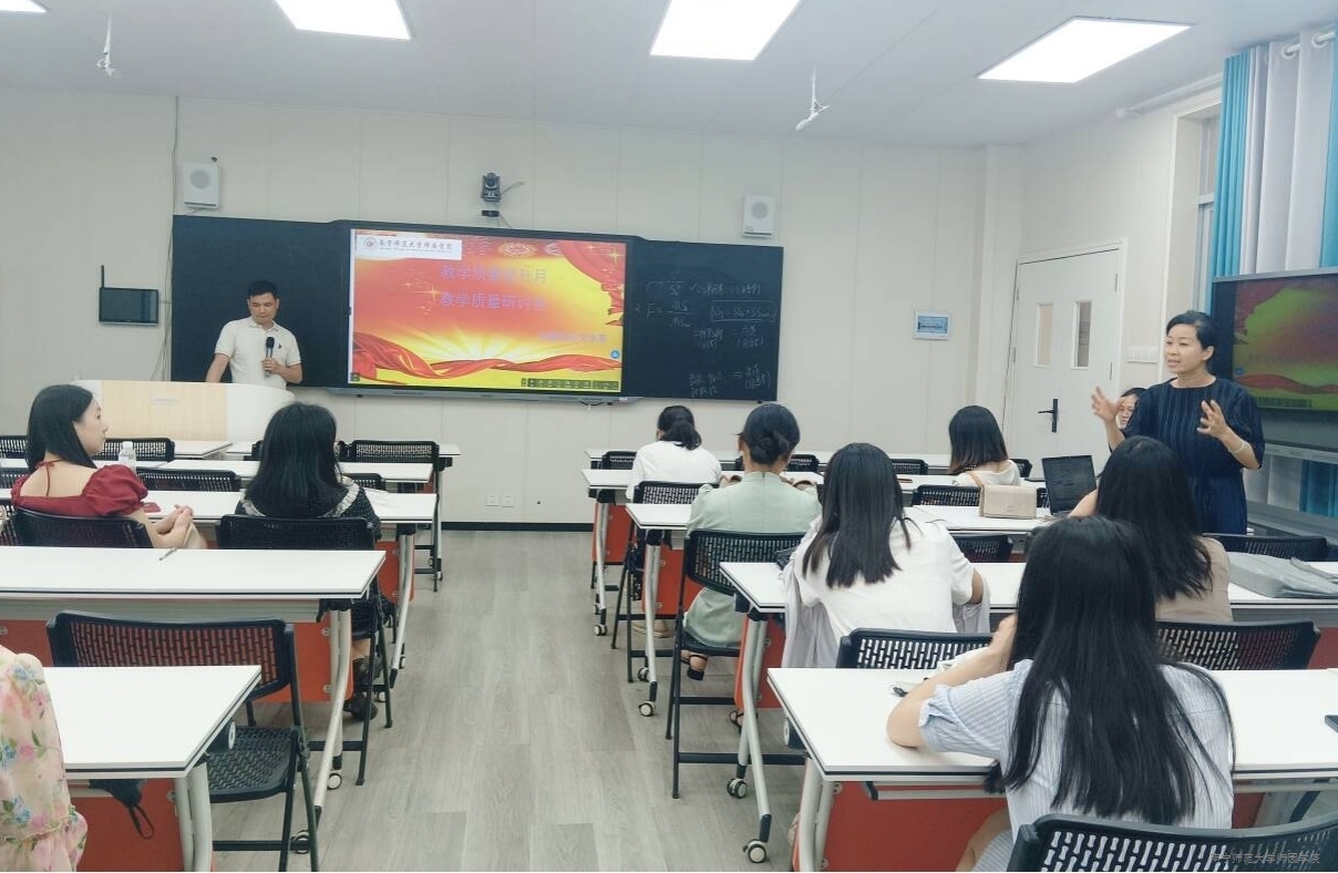 随后,苏道佳主任组织全体与会教师就如何进一步提升教学质量进行了交流研讨。与会教师纷纷根据学科特色、教学经验发表意见和建议,并一致认为提升课堂教学质量需要全系教师共同努力,不断提升自己的业务素养和课堂效果,同时积极打磨课堂,营造良好的学习氛围,引导学生全神贯注地学习,达到更好的育人成效。苏道佳主任认真听取了各位老师的意见建议后强调,要始终遵循教学质量是学院发展之基的原则,鼓励教师们不断探索创新,打造真实、扎实、高效的常态课堂,推动教学质量不断提升。