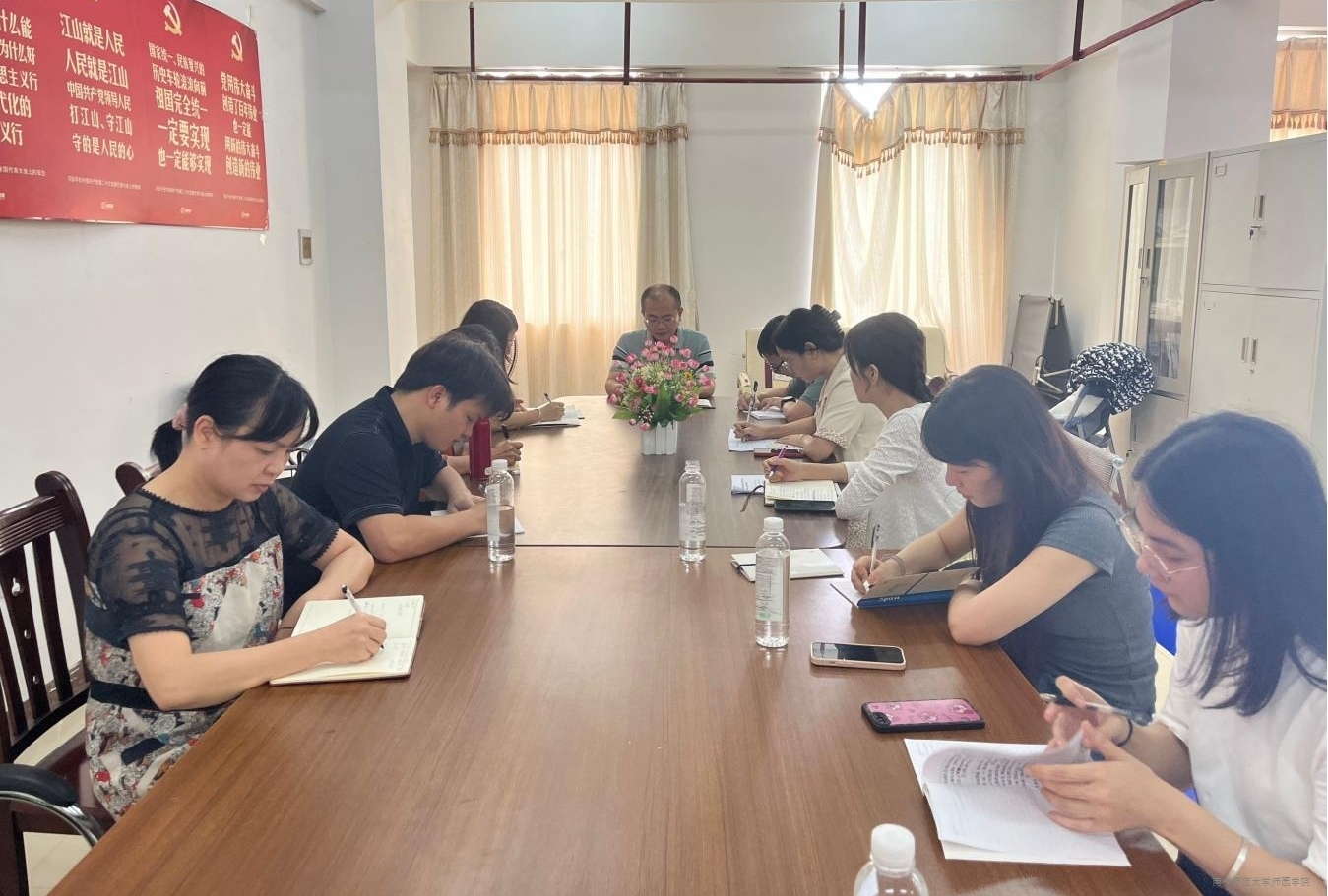 为深入推进党纪学习教育,强化政治纪律规矩意识,强化党员干部作风建设,6月20日下午,思政部教工直属党支部在行政楼402办公室召开党纪学习教育专题党课。党支部书记凌锐作《学党纪 知党纪 明党纪 守党纪》主题授课。