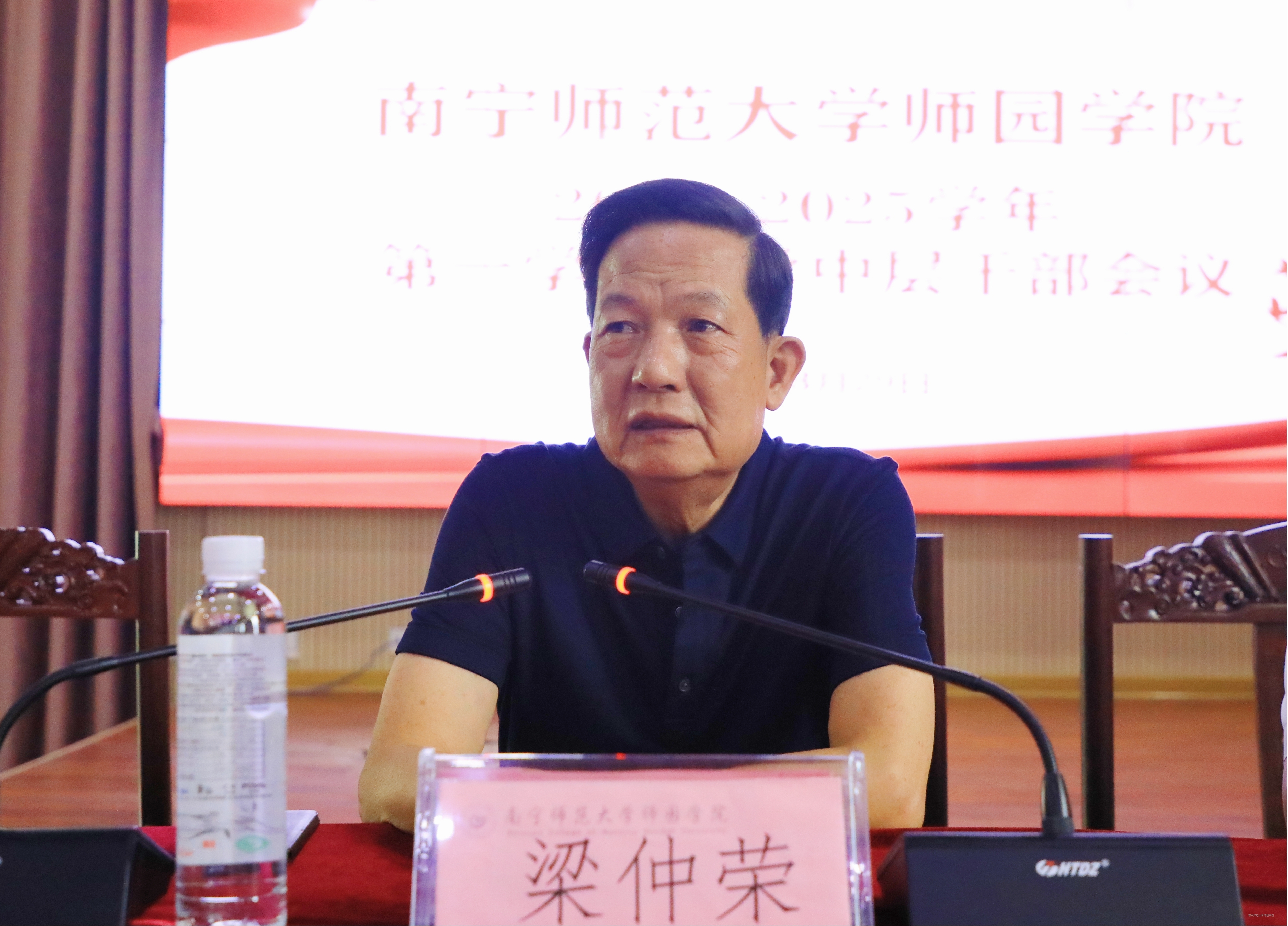 梁仲荣董事长在会上充分肯定了各部门通力协作顺利完成暑期各项工作任务,并就扎实推进新学期各项工作强调三点工作要求:一是深入学习贯彻党的二十届三中全会精神,强化理论武装,用党的创新理论凝心铸魂,推动提升专业能力,为学院各项事业奉献青春力量。二是积极顺应国家高等教育发展趋势,科学谋划发展路径,强化内部治理体系,科学、规范、高效开展各项教育教学工作。三是深刻认识独立学院的特性与发展方向,强化岗位责任意识,充分凝聚广大师生的强大力量为学院教育教学高质量发展和高效开展转设工作团结奋进。