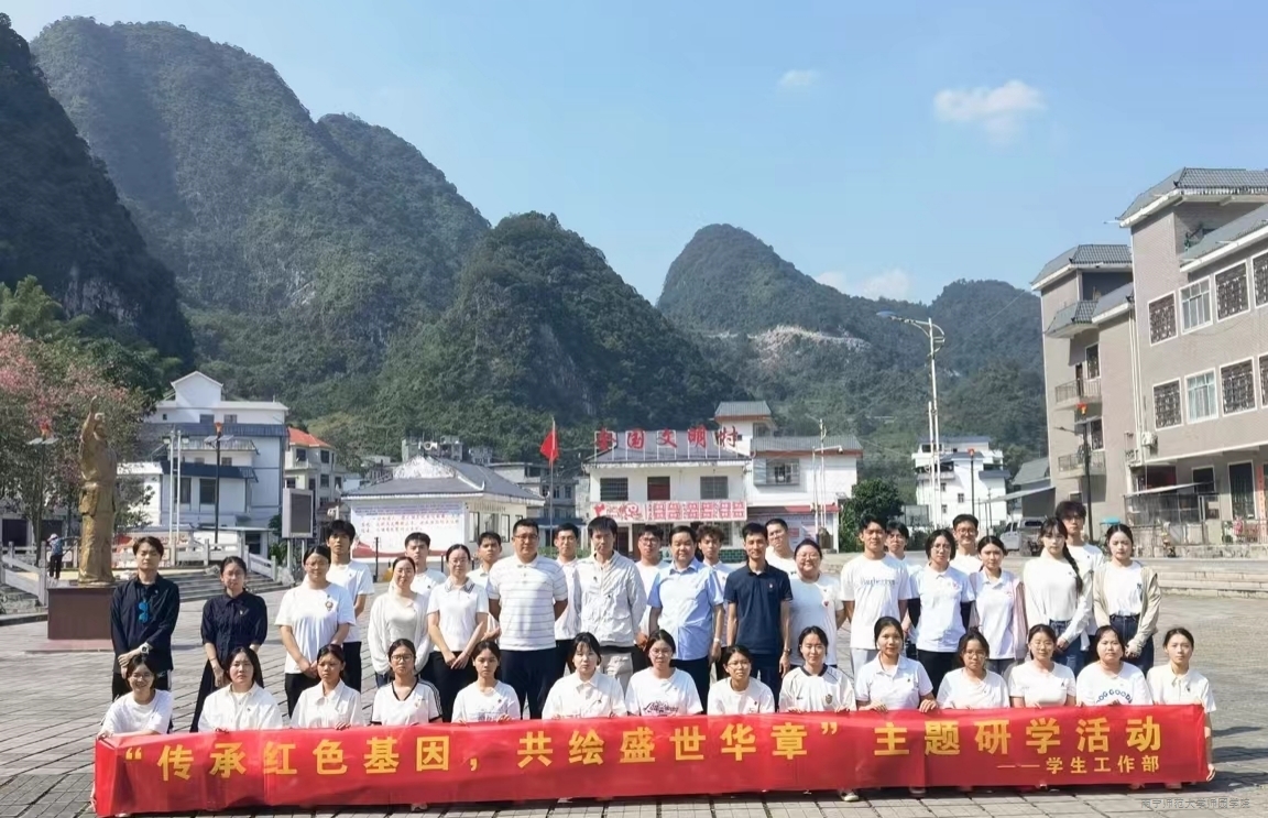 为了热烈庆祝新中国成立75周年,引导学院师生进一步学习宣传贯彻党的二十届三中全会精神,坚持立德树人根本任务,传承红色基因,砥砺初心使命,帮助学院受奖助学生拓宽视野、提升素养,推动党史学习教育常态化长效化,10月12日,学院党委副书记、常务副院长李剑喜带领学院学生工作处、团委相关负责人,教师代表、学生代表赴河池市东兰县开展以“赓续红色血脉,厚植爱国情怀”为主题的爱国主义教育暨资助育人研学活动。