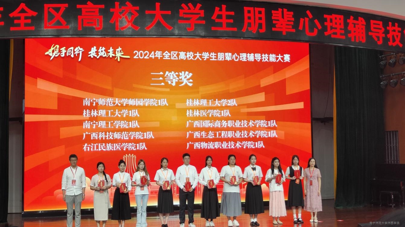 5月25日至26日,2024年全区高校学生朋辈心理辅导技能大赛决赛在南宁落下帷幕,beat365选派的参赛队伍在决赛中荣获本科组三等奖。