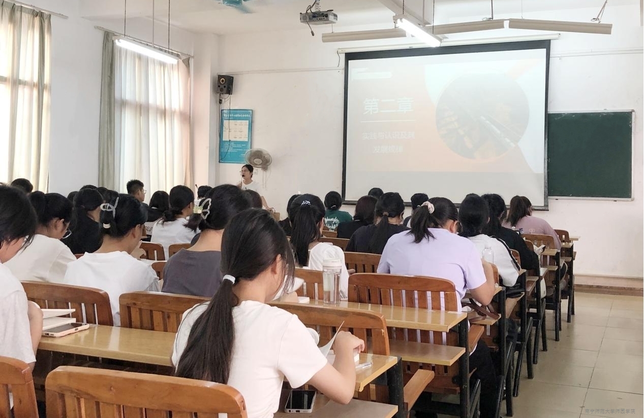 本次教学公开课由思政部罗英老师主讲,讲授内容为《实践与认识及其发展规律》。课上,罗英老师带领学生们共同回顾梳理上一节课的知识点并以提问的方式导入新课,激发学生的学习主观能动性并引导学生集中注意力参与新课讲授环节。在新课讲授环节,罗英老师结合实际案例对科学发展观的创立与发展、实践的本质与基本结构等课程知识点进行详细解读。罗英老师在教学过程中所讲授的知识点衔接自然、重难点突出,同时她注重理论联系实际,帮助学生加深所学知识点的理解与掌握,达到了良好的教学效果。