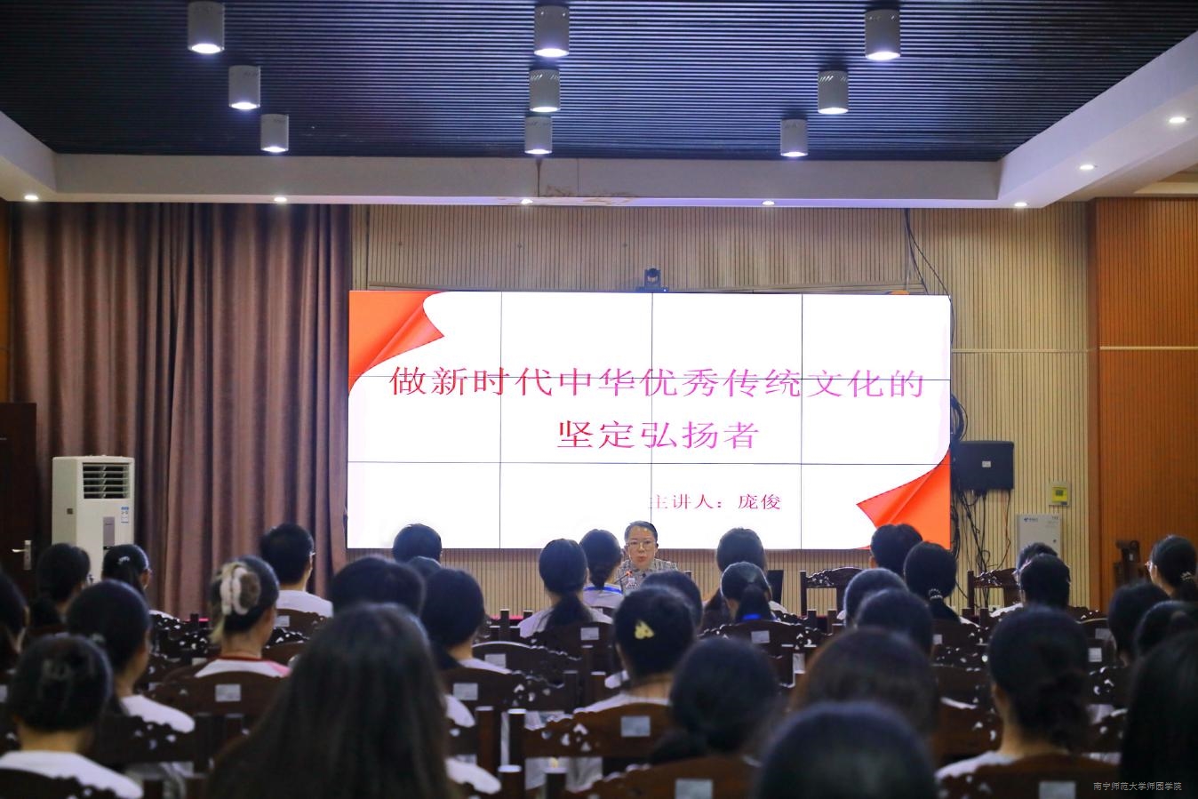 庞俊副院长以《做新时代中华优秀传统文化的坚定弘扬者》为题解读习近平文化思想,通过为师生们梳理习近平文化思想的发展脉络、立场观点、科学内涵,引导师生们提高政治站位,将学习成效转化为推动学院校园文化宣传工作创新发展的强大动力,以实际行动大力弘扬正能量、继承发扬中华优秀传统文化,巩固拓展宣传文化阵地。庞副院长在讲座上还就做好校园宣传工作的要素和加强应对舆情处置的方式方法等内容进行了重点讲解,希望师生们在开展校园文化宣传工作中做到目标明确、强化引领,提升宣传成效,并鼓励师生们增强脚力、眼力、脑力、笔力,做到深入实际、调查实践,提笔能写、张口能说、抬镜能拍,努力锻造成为宣传战线的精兵强将。