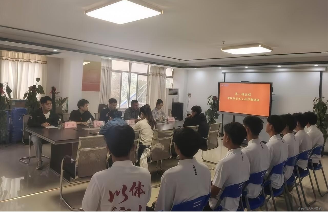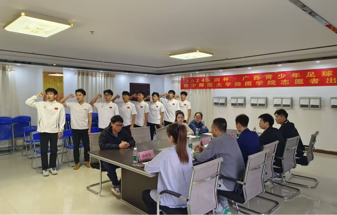 为深入学习贯彻习近平总书记关于体育工作论述,大力推进新时代希望工程“素质提升计划”,促进青少年足球健康持续高质量发展,11月4日上午,我院于行政楼202会议室举行2024东润杯·青少年足球邀请赛志愿者出征仪式。学院学生工作部部长叶栋、体育系主任邓朝、团委书记韦博文以及体育系教师代表、辅导员代表,全体支教志愿者参加仪式。仪式由学生工作部部长叶栋主持。