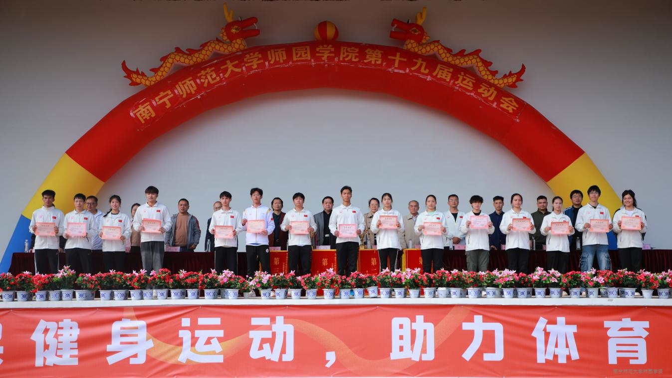 本届运动会是一次团结、拼搏、奋进的盛会。参赛师生在赛场上的竞技精神,充分展现出顽强拼搏、永不言弃的精神风貌。经过激烈的角逐,理工系荣获甲组团体总分第一名,体育系2023级荣获乙组团体总分第一名。此外,外语系代表队、艺术系代表队获评“精神文明运动队”荣誉称号;体育系、经管系获评为“优秀组织奖”单位;赖丰胜等16名学生获评为“精神文明运动员”称号;蒋佳锦等24名学生获评为“优秀运动员”称号;李双燕等15名学生获评为“优秀裁判员”称号。学院领导依次为获奖系部、班级、运动员、裁判员颁发奖杯、奖状、锦旗,予以鼓励。