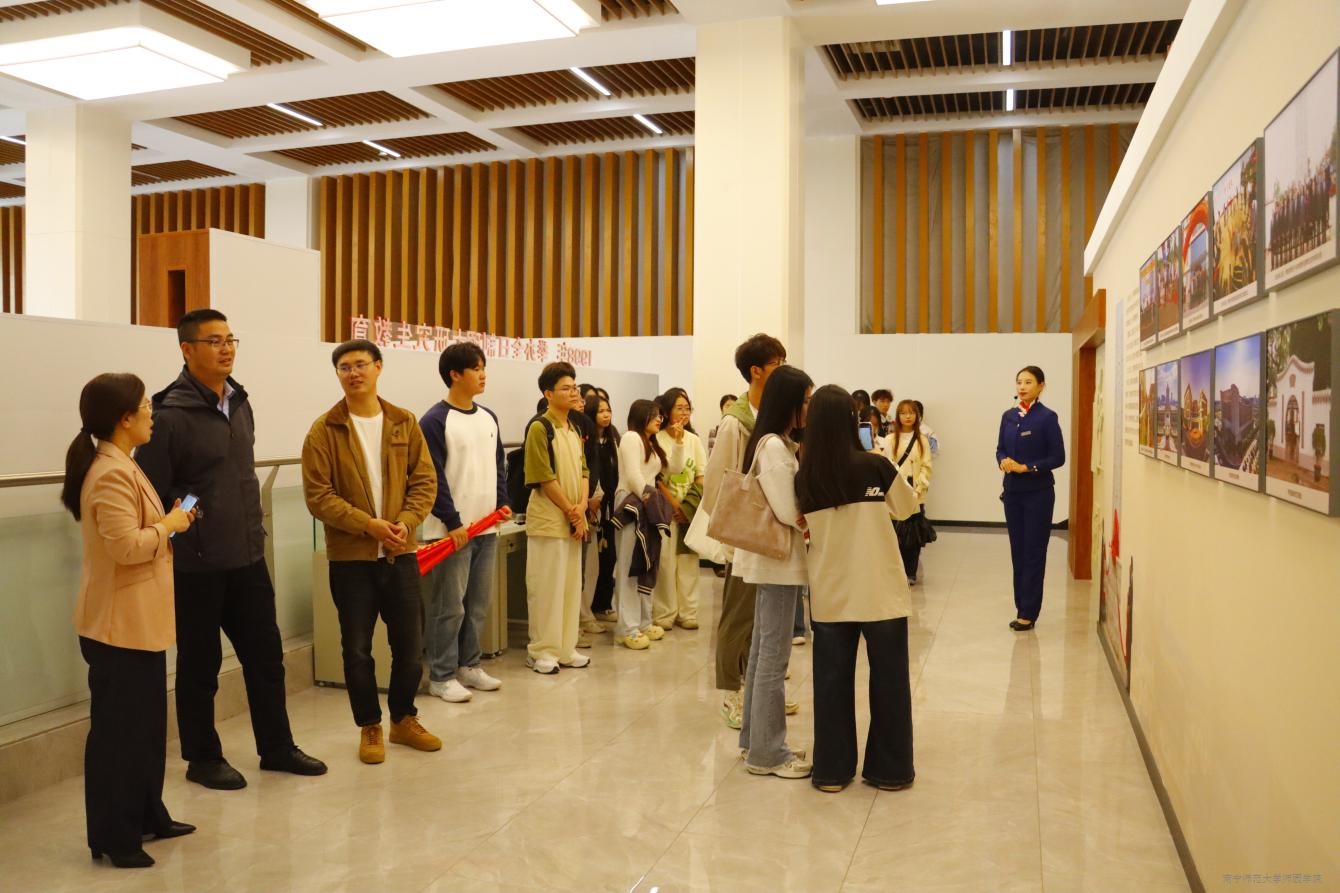 当天下午,学院师生在李树玲副部长的带领下,先后参观了南宁师范大学办学成果展、中国-东盟职业教育发展研究智库,学习了解南宁师范大学的校史、办学亮点特色与成效、校园文化建设和学习借鉴南宁师范大学宣传部通过校园宣传进行思想政治教育、铸魂育人、凝聚人心的创新思路。