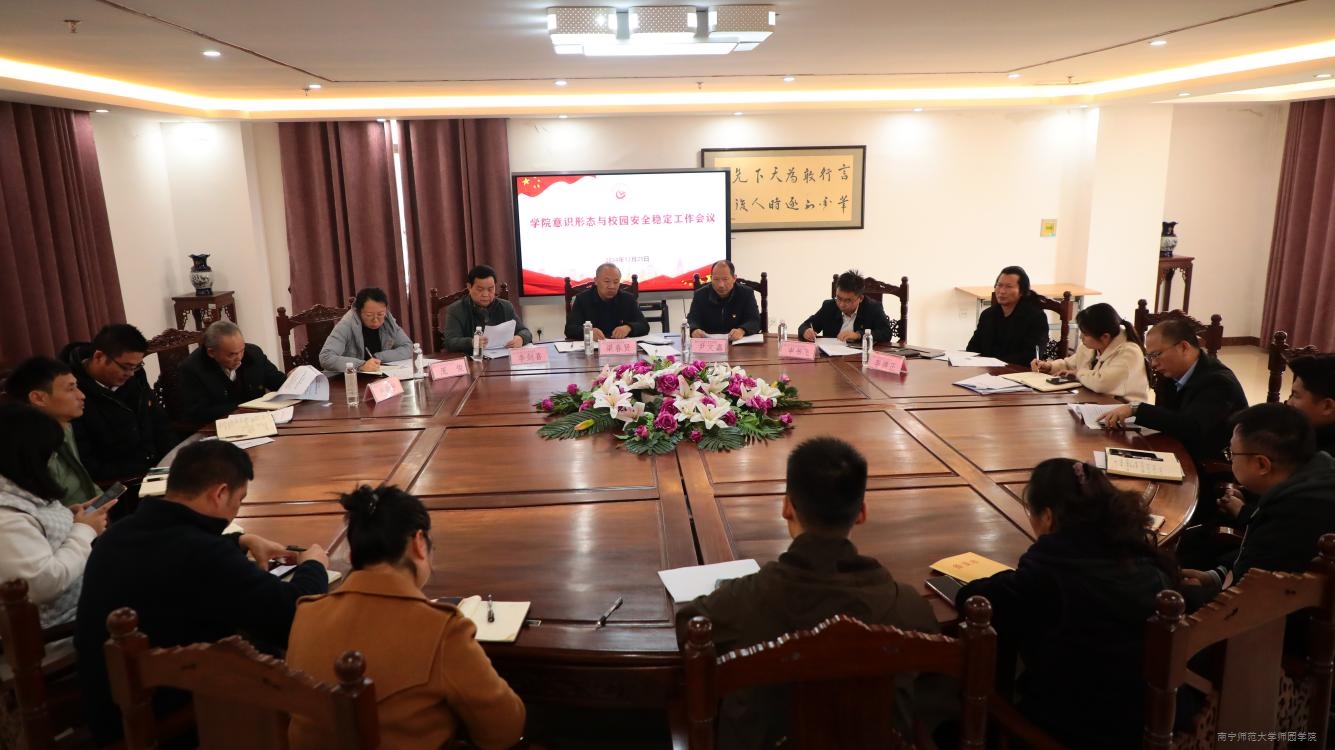 12月25日,我院在行政综合楼10楼1002会议室召开意识形态与校园安全稳定工作会议。学院领导,各部门、各系负责人,各党总支、各直属党支部书记参加会议。会议由庞俊副院长主持。