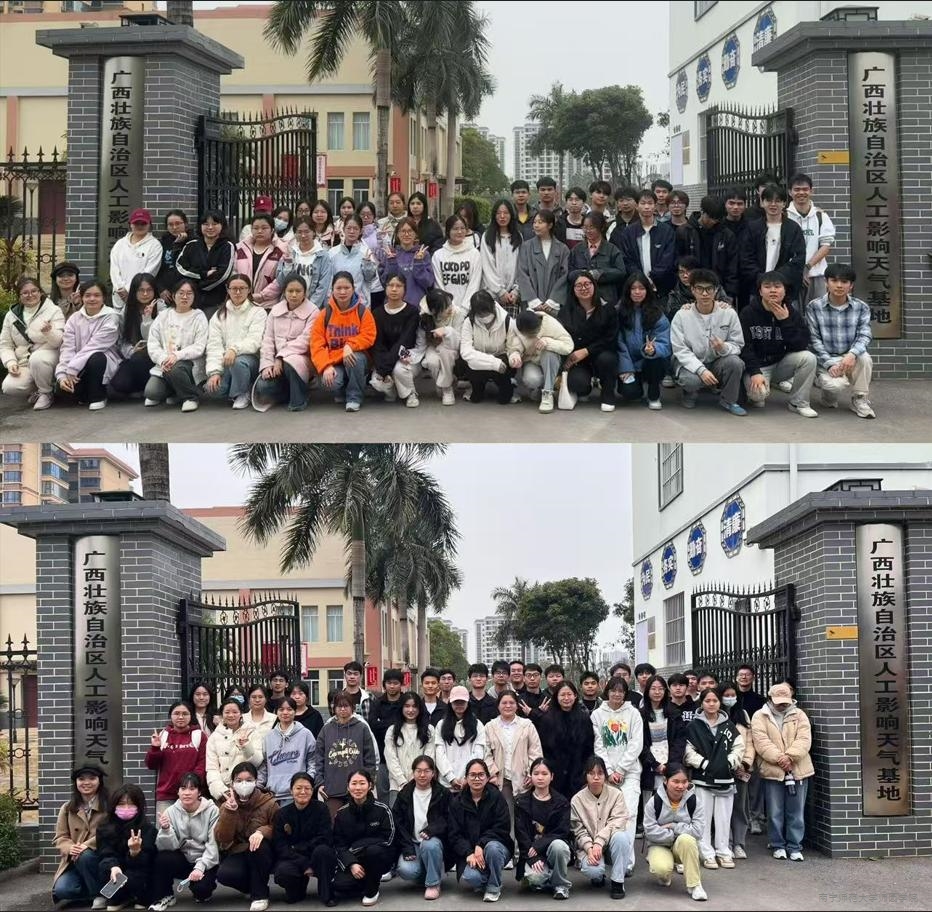“气象万千,气候攸关”。我院师生在广西人工影响天气办公室先后参观了人工影响天气的科普园、人影基地科普馆,认真学习人工增雨、防雹等的原理、方法以及在实际应用中的重要作用和学习人工增雨设备的发展历程、气象作业装备、体验人工增雨作业装备的规范化操作,直观感受人工增雨作业的全过程。