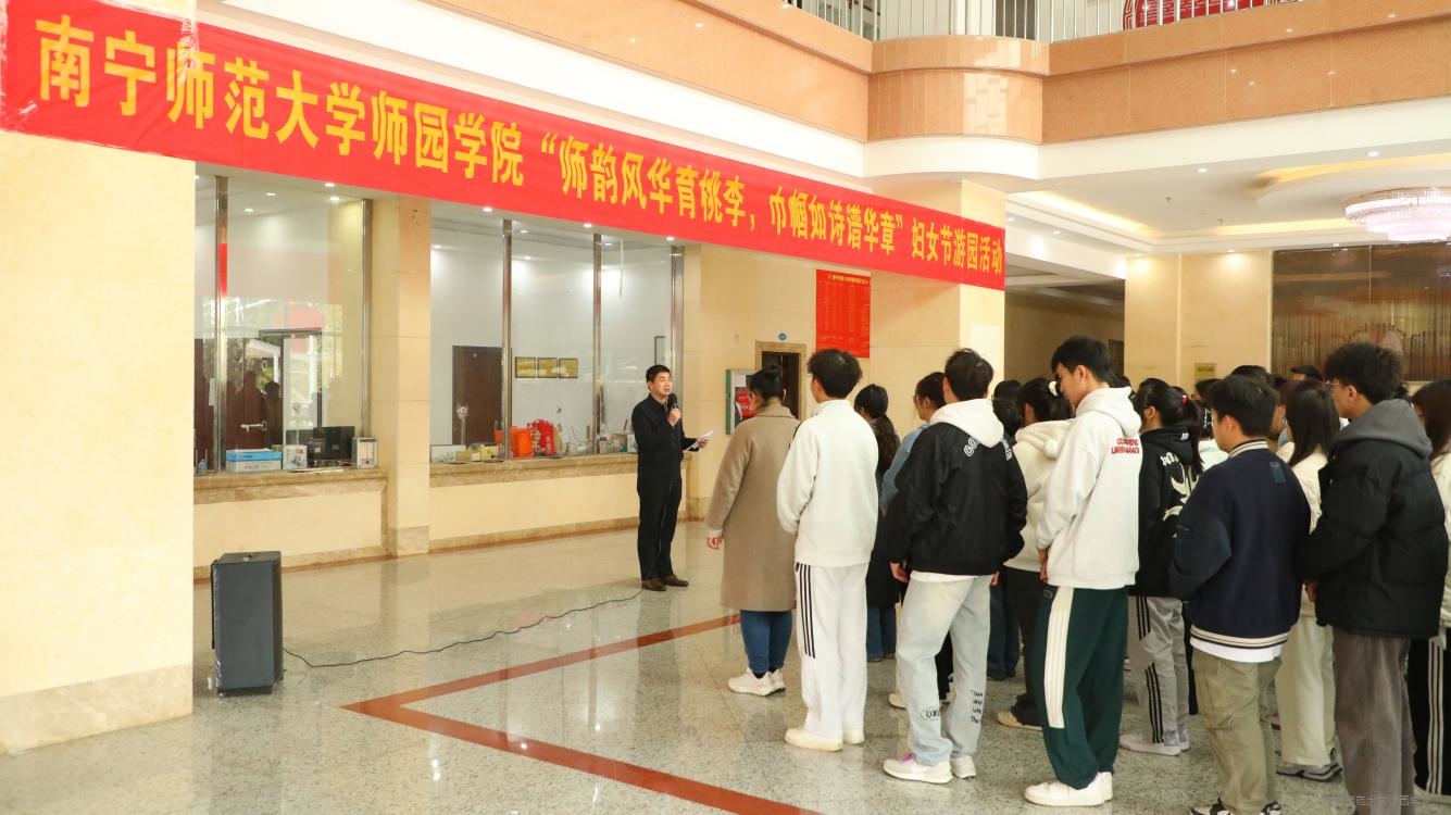 梁秋副书记为本次活动致辞并宣布2025年“师韵风华育桃李,巾帼如诗谱华章”妇女节游园活动正式开始。梁秋副书记在致辞中首先代表学院董事会及党政领导班子向广大女同胞致以节日问候和美好祝福并充分肯定了女同胞在学院教学、科研、管理、服务和持续推进转型转设等领域中展现的担当与奉献。梁秋副书记指出,2025年是“十四五”收官及“十五五”谋划之年,也是学院全面综合改革和实现转设发展的关键之年。为激励广大师生员工以实际行动彰显责任与担当,为学院发展注入强劲动力,梁秋副书记提出三点希望。一是要筑牢思想之基,展现新时代的“巾帼之志”。广大师生要坚持用党的创新理论武装头脑,坚持以学铸魂,将学习成果转化为推动学院高质量发展的强大动力;以坚定的信念在教育事业的舞台上绽放属于新时代的光芒。二是要秉持奋斗之志,勇做时代洪流的“铿锵玫瑰”。新时代是奋斗者的时代,也是女性大有可为、大有作为的时代。广大师生要胸怀“国之大者”,勇立时代潮头在教学、管理等岗位中深耕细作、开拓进取,在实现中华民族伟大复兴的征程中,书写属于自己、属于时代的华章。三是要加强师德师风建设,争当敬业爱生的“四有”好老师。要严爱相济、润己泽人,呵护学生心灵守护学生成长,切实做到既精通专业知识、做好“经师”,又涵养德行、成为“人师”。最后,梁秋副书记强调指出,学院也将继续高度重视妇女工作,关心关爱女同胞,切实维护师生合法权益,努力为全体师生创造更加良好的工作和生活环境。