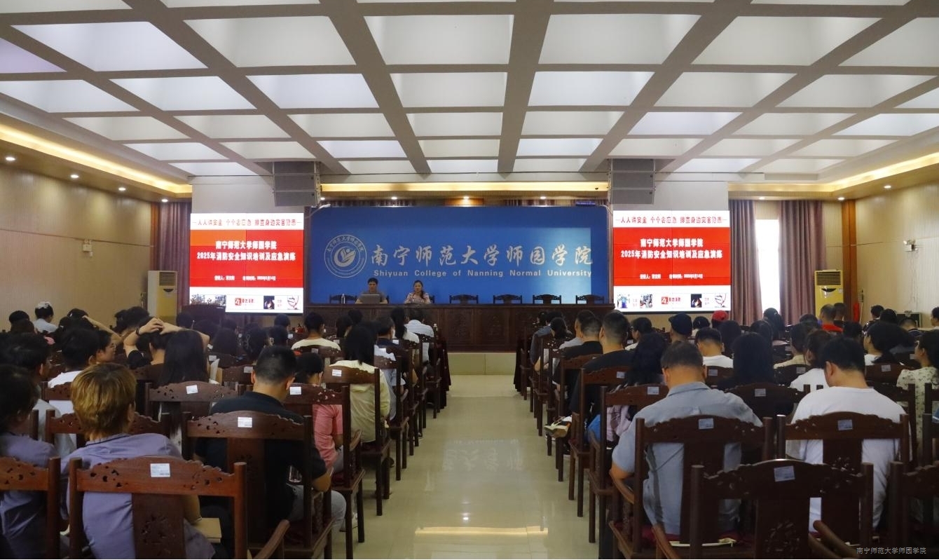 为进一步强化学院教职工的消防安全意识,构建坚实的校园防火安全防线。我院于5月14日下午,在行政楼12楼第二报告厅开展2025年消防安全知识培训及应急演练。广西致力消防服务中心覃云网教官应邀主讲,学院全体教职工参加讲座。