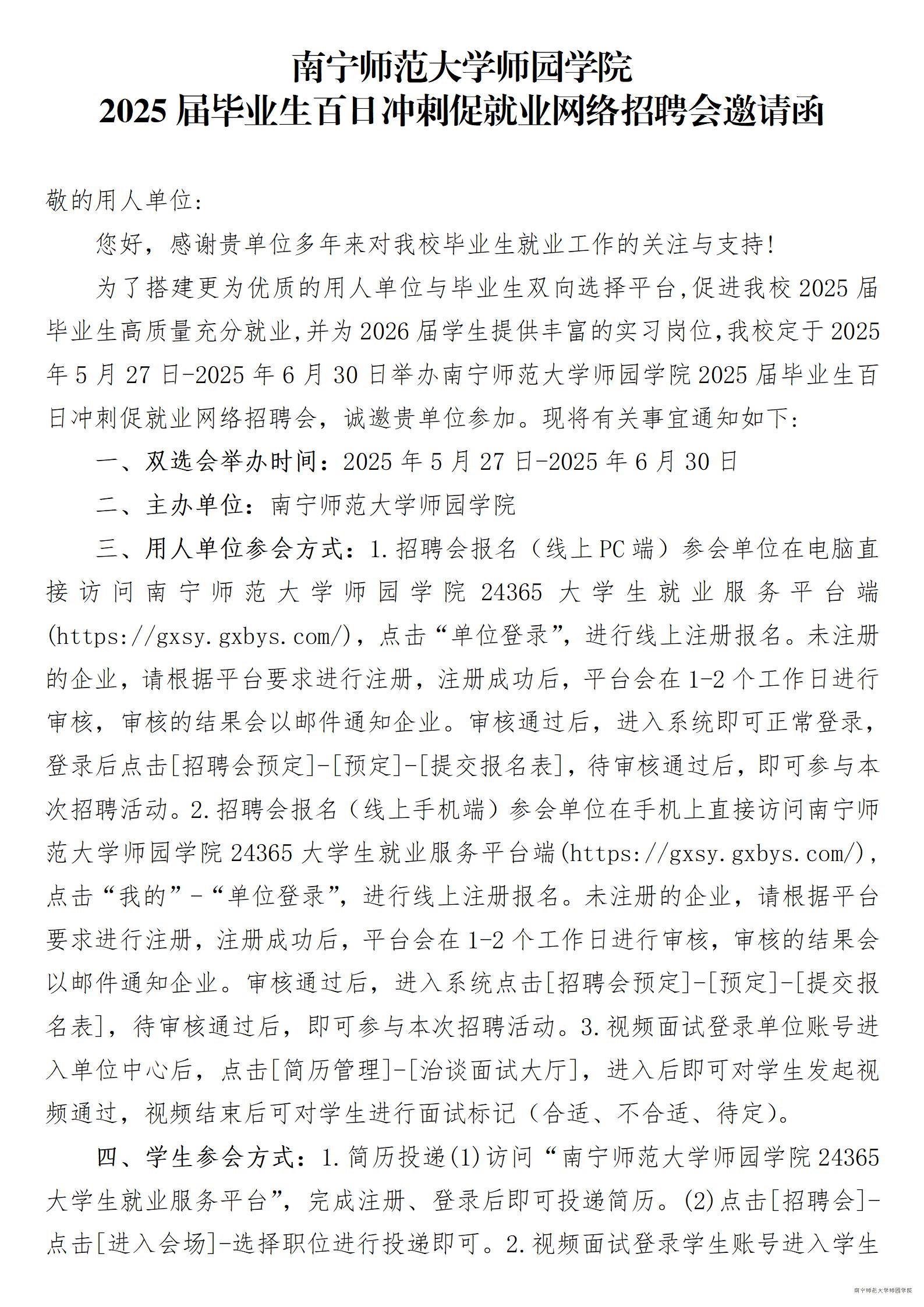 beat365官方网站2025届毕业生百日冲刺就业网络招聘会邀请函