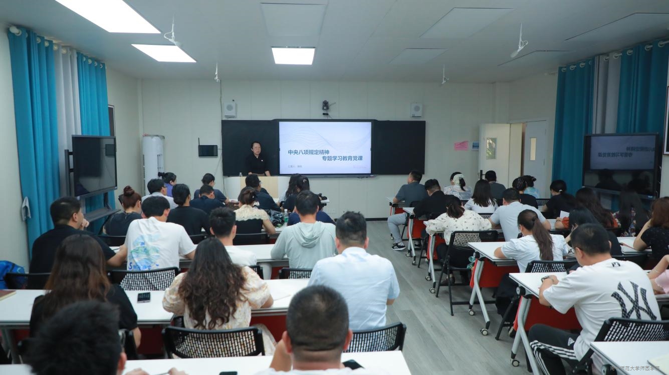 为深入贯彻中央八项规定精神,持续深化作风建设,6月25日上午,学院纪委书记、副院长庞俊在教学楼4-108教室为机关党总支、体育系党总支全体党员教师讲授深入贯彻中央八项规定精神专题党课。