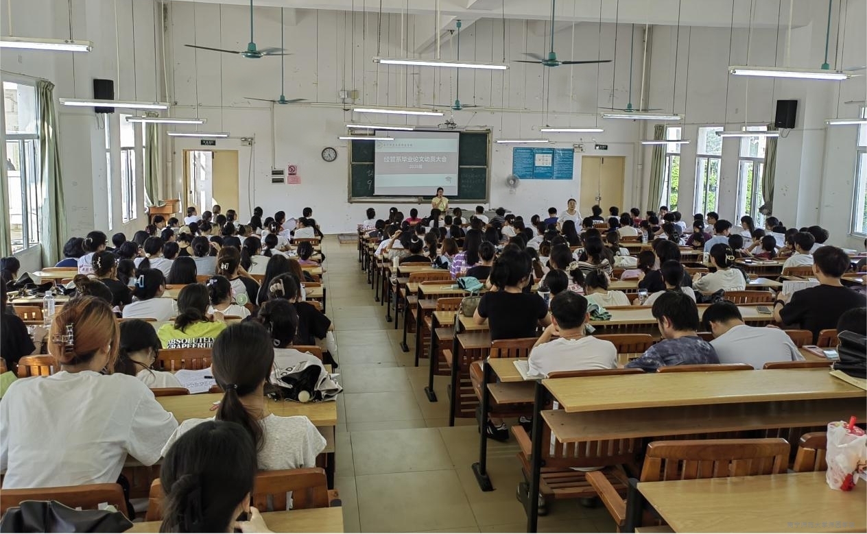 6月26日下午,经管系在教学楼4-408教室召开了2022级学生毕业论文写作指导暨实习就业动员大会,本次大会旨在帮助学生明确毕业论文写作方向,推进实习就业工作,为2026届毕业生就业奠定基础。经管系主任李湘君、副主任黄闵、实习指导老师及2022级全体学生参加会议。