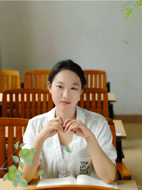 她砺学精进,志存高远。她始终以卓越为标杆,连续两年荣膺国家奖学金,并连续三学年获评校级“三好学生”及“优秀学生奖学金”三等奖。她服务集体,自入学起担任班级文艺委员等多职,三度获评校级“优秀学生干部”及“优秀团员”荣誉称号。