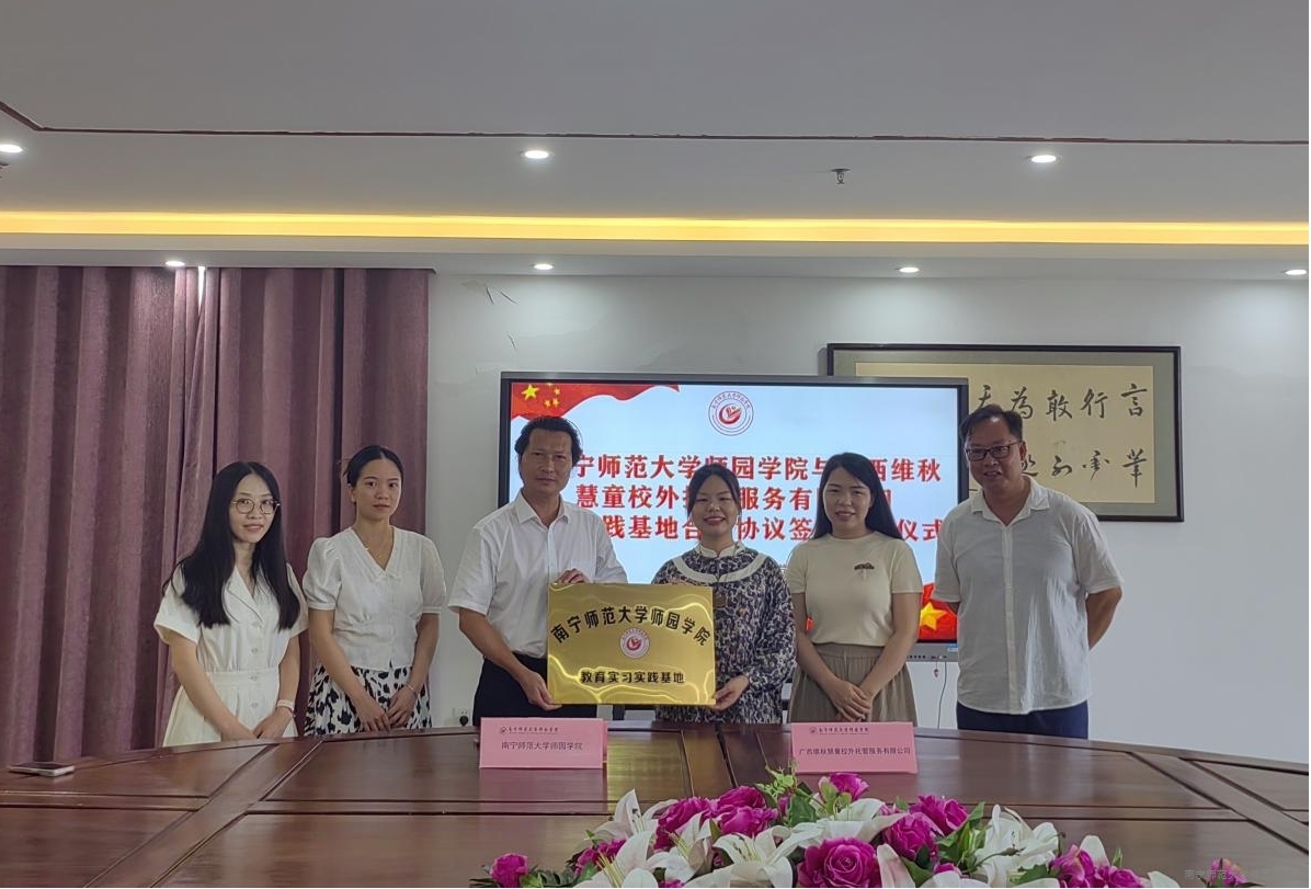 为深化校企合作、推动产教深度融合,7月4日上午,学院与广西维秋慧童校外托管服务有限公司在学院综合楼会议室1002举行实习实践基地合作协议签约仪式。学院副院长李德正,中文系主任、教研室副主任、辅导员以及招就处相关负责人与广西维秋慧童公司校长罗维秋、书法部主任罗维雁共同参加签约仪式。