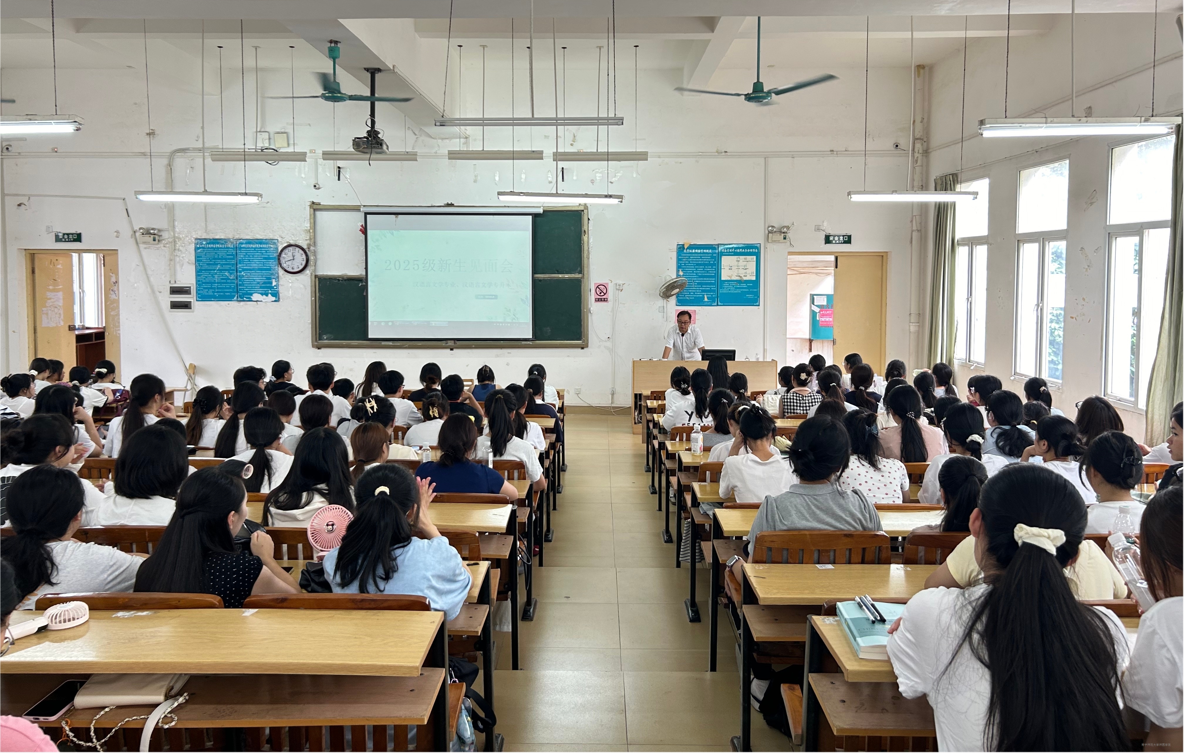 为帮助新生快速融入大学生活、明确学习方向,树立价值追求,9月15日中午,中文系在教学楼4-208教室召开2025级新生入学教育大会。中文系主任骆柳毅与中文系新闻广告教研室主任胡安迪、汉语言文学教研室副主任黄曼婷、2025级新生辅导员、班主任以及全体2025级新生参加会议。会议由新生辅导员韦咏梅主持。