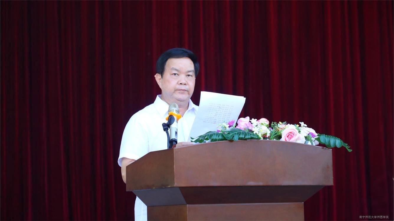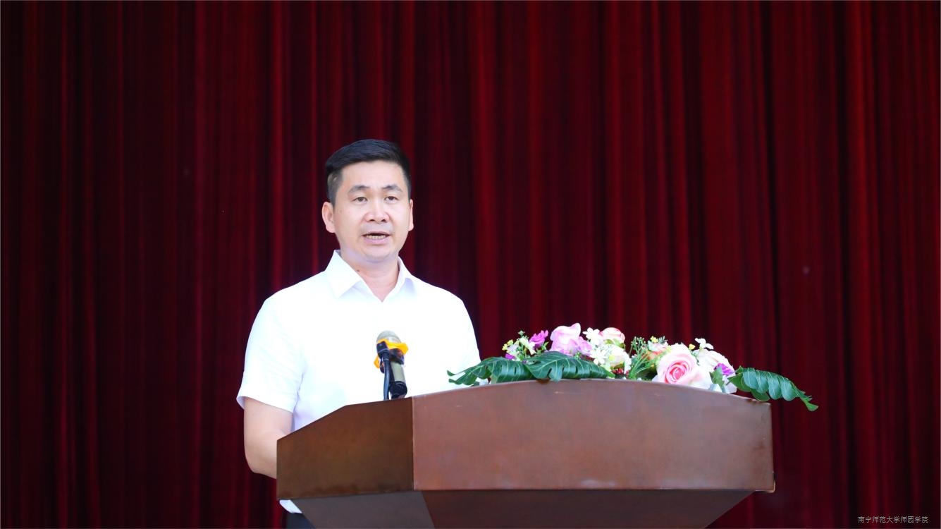 党委副书记、常务副院长李剑喜在大会上宣读《南宁师范大学师园学校关于表彰2025级新生军训“优秀教官”“标兵连”“优秀学员”的决定》文件,充分肯定了2025级新生军训成果并激励同学们在今后的学习生活中坚定爱国主义信念,继续发扬艰苦奋斗、勇敢顽强的精神。学校领导为在军训中表现突出的集体和个人颁发奖项。