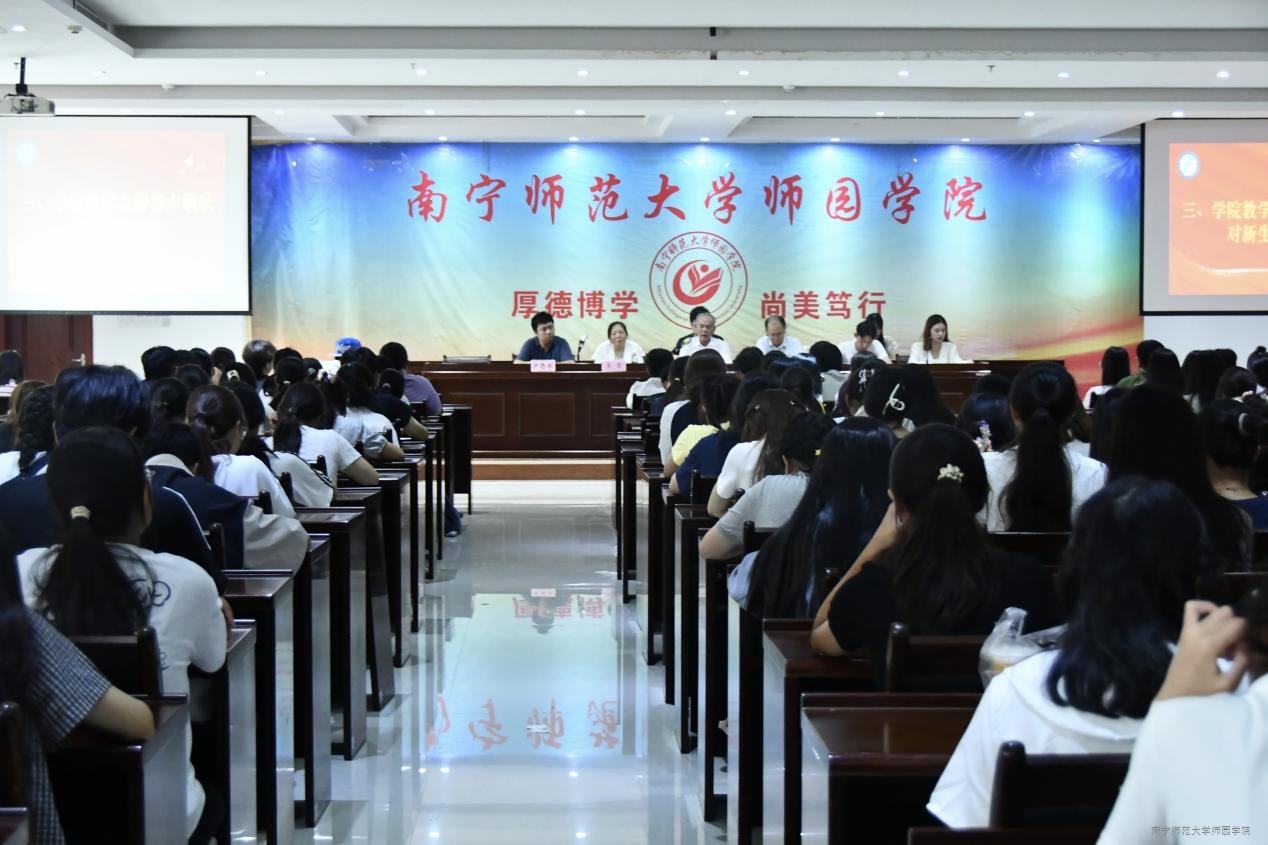 教育系主任冯朝广向新生提出四点希望。一是坚定从教信念,树立教育情怀;二是夯实专业基础,提升专业素养;三是融入广西大地,了解教育实情;四是团结互助,共建教育系家园。