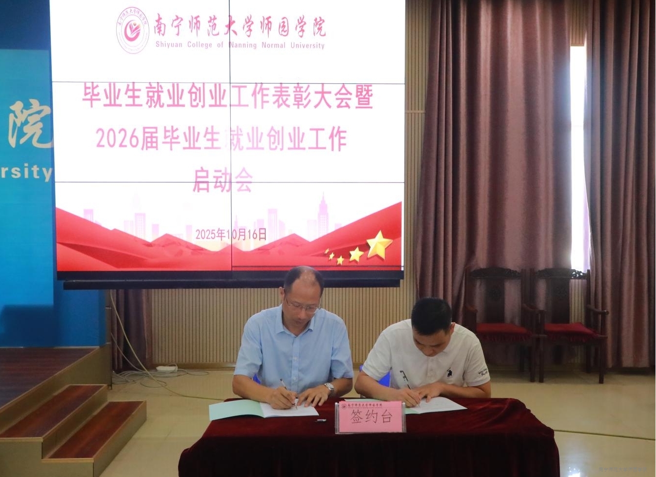 为做好beat3652026届毕业生就业工作,10月16日上午,学校在行政综合楼12楼第二报告厅召开毕业生就业创业工作表彰大会暨2026届毕业生就业创业工作启动会。学校董事长梁仲荣,校长尹文嘉,党委副书记梁秋(主持党委工作),副校长申书飞,纪委书记、副校长庞俊,副校长李德正,教学总督导卢敏秋出席会议。全体就业创业工作领导小组成员以及全体毕业班辅导员、毕业生就业创业工作获奖个人、招就处全体成员参加会议。会议由申书飞副校长主持。