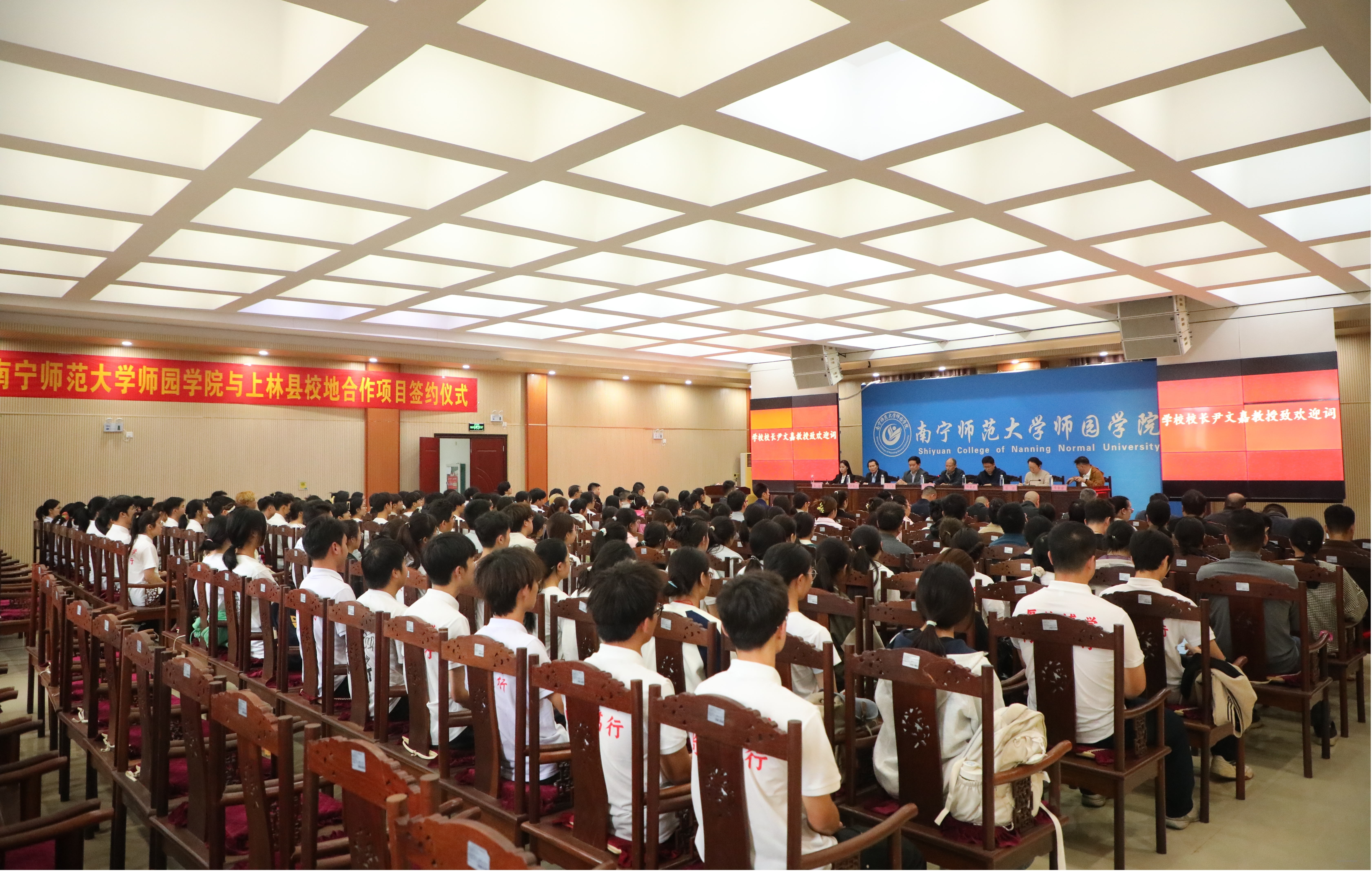 签约仪式上,上林县团委书记葛昭还系统介绍了合作背景、合作内容、保障机制。随后,校地企在热烈融洽的氛围中正式签署《校地旅游发展战略合作框架协议书》《校企战略合作框架协议书》。此次签约标志着三方长期、稳定、全面合作关系正式开启,将共同打造成协同育人的新典范、赋能地方发展的新引擎。