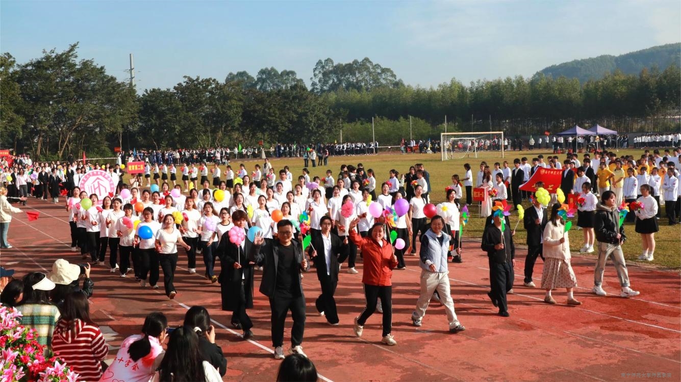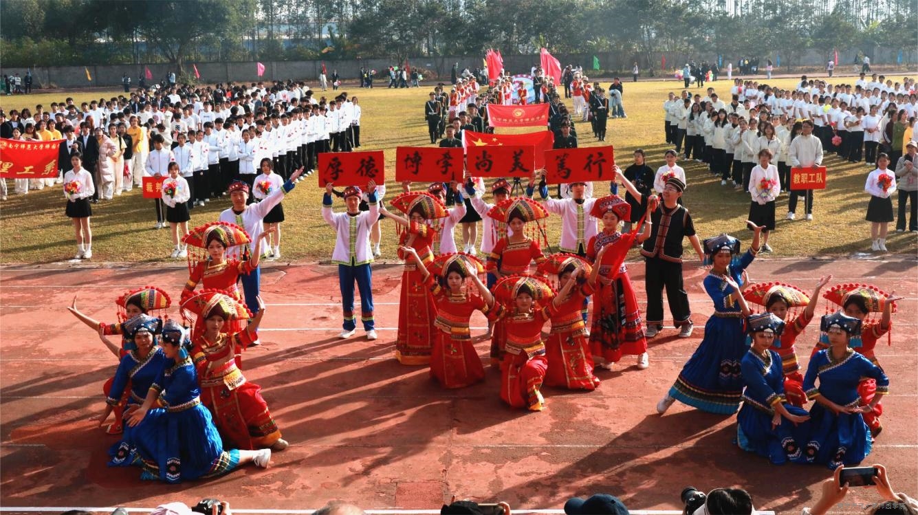 冬月盛会,号声嘹亮震九霄。上午9时,温暖阳光倾洒在田径场。《运动员进行曲》慷慨激昂、振奋人心。国旗队、校旗队踏着矫健有力的步伐,用坚毅的眼神,庄严护卫中华人民共和国国旗、beat365官方网站校旗入场。随后鼓号队、鲜花会徽队、红旗队、裁判员代表队、教职工代表队及各系代表队依次入场,他们个个精神抖擞、喊着铿锵有力的口号,风华正茂的景象,生动展现了beat365师生的睿智儒雅、胸怀天下的精神品格。在文化展演环节,各系融合专业特色、传统文化底蕴和创新理念呈现了独具特色的表演,充分彰显了beat365学子的青春活力与无限创意。