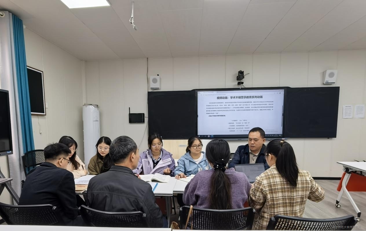 近日,理工系地理科学教研室在4-104智慧教室开展了一场以“融入‘课程思政’元素的集体备课”为主题的教研活动。会议由教研室主任谈思泳老师主持,教研室全体教师参加会议。