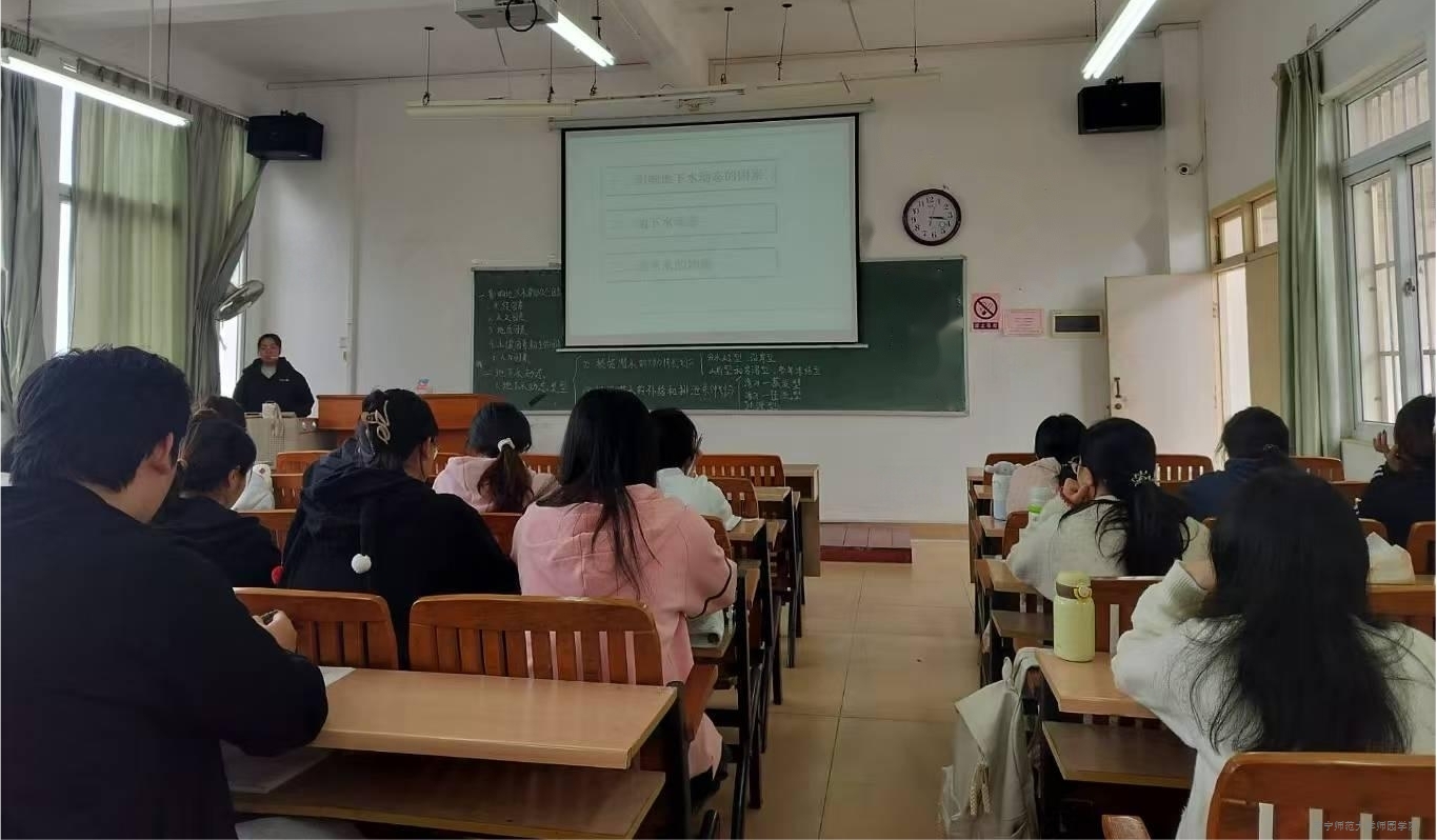 姚瑶老师讲授《水文学与水资源》中“地下水的动态与均衡”内容,系统分析气候、地质及人为因素对地下水的影响,结合我国不同区域案例,说明地下水动态特征。她重点通过数据与图表展示过度开采地下水的生态后果,引导学生专业地思考水资源管理,自觉践行“绿水青山就是金山银山”的生态文明理念。