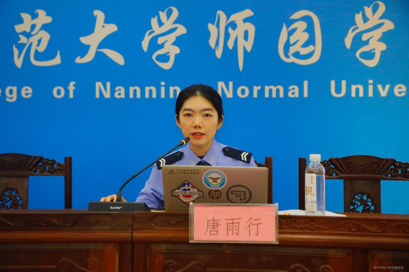 唐雨行警官首先以抽奖送警察小熊挂件为开场,迅速拉近与在场师生的距离,为开展防范电信网络诈骗宣讲奠定良好基础。她指出,当前年轻人是电诈犯罪分子的首要目标,每3名大学生中就有1名收到过诈骗邀约,提醒广大师生要重视反诈工作、学习反诈知识、增强反诈意识,避免上当受骗。