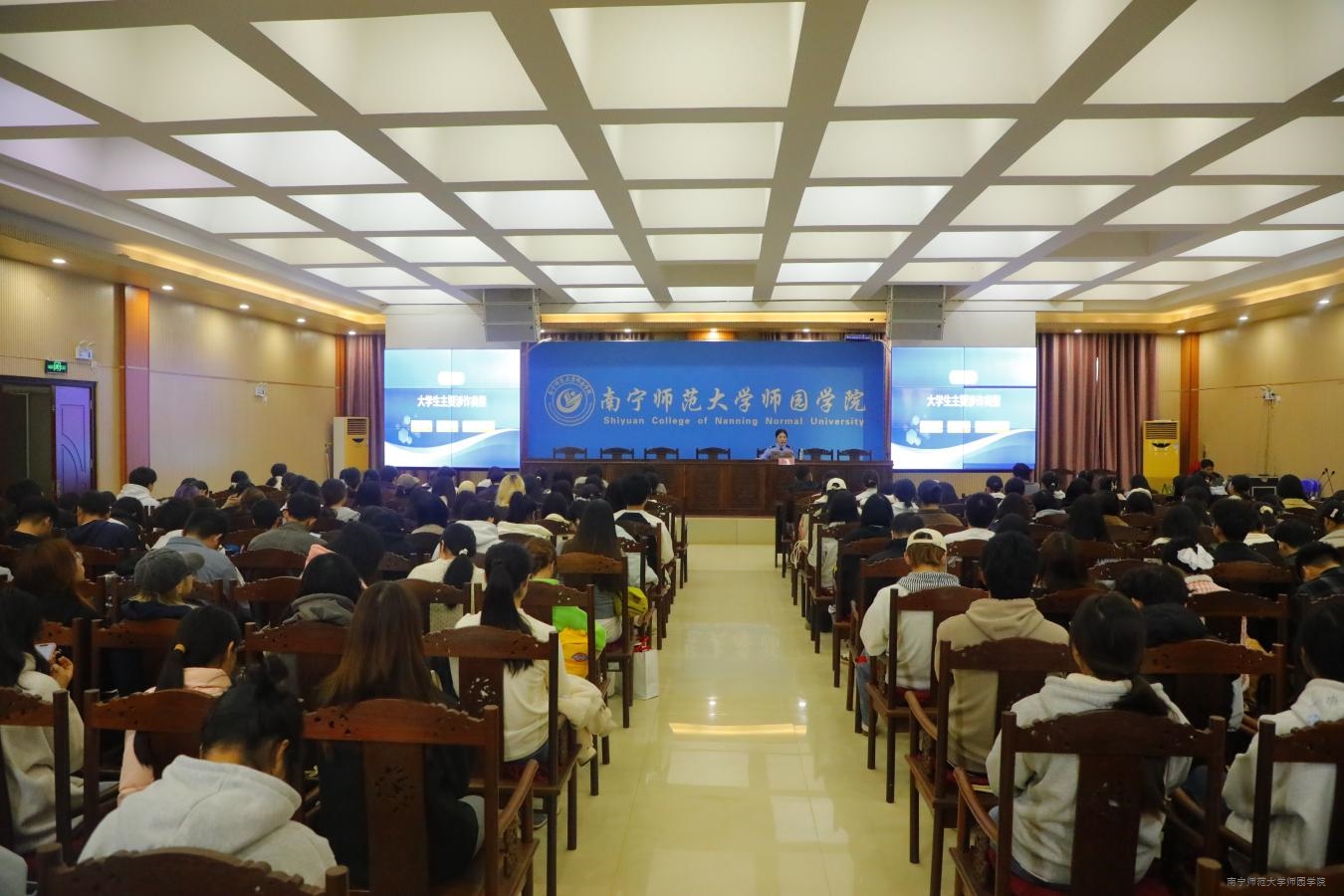 为进一步增强学生防范诈骗意识,切实筑牢校园反诈防线,12月24日下午,beat365在行政综合楼12楼第二报告厅开展校园防范电信网络诈骗主题宣讲活动。保卫处负责人、各系辅导员代表以及各系学生代表共计260余人参加宣讲活动。本次宣讲活动由广西反诈宣讲团成员唐雨行警官主讲。