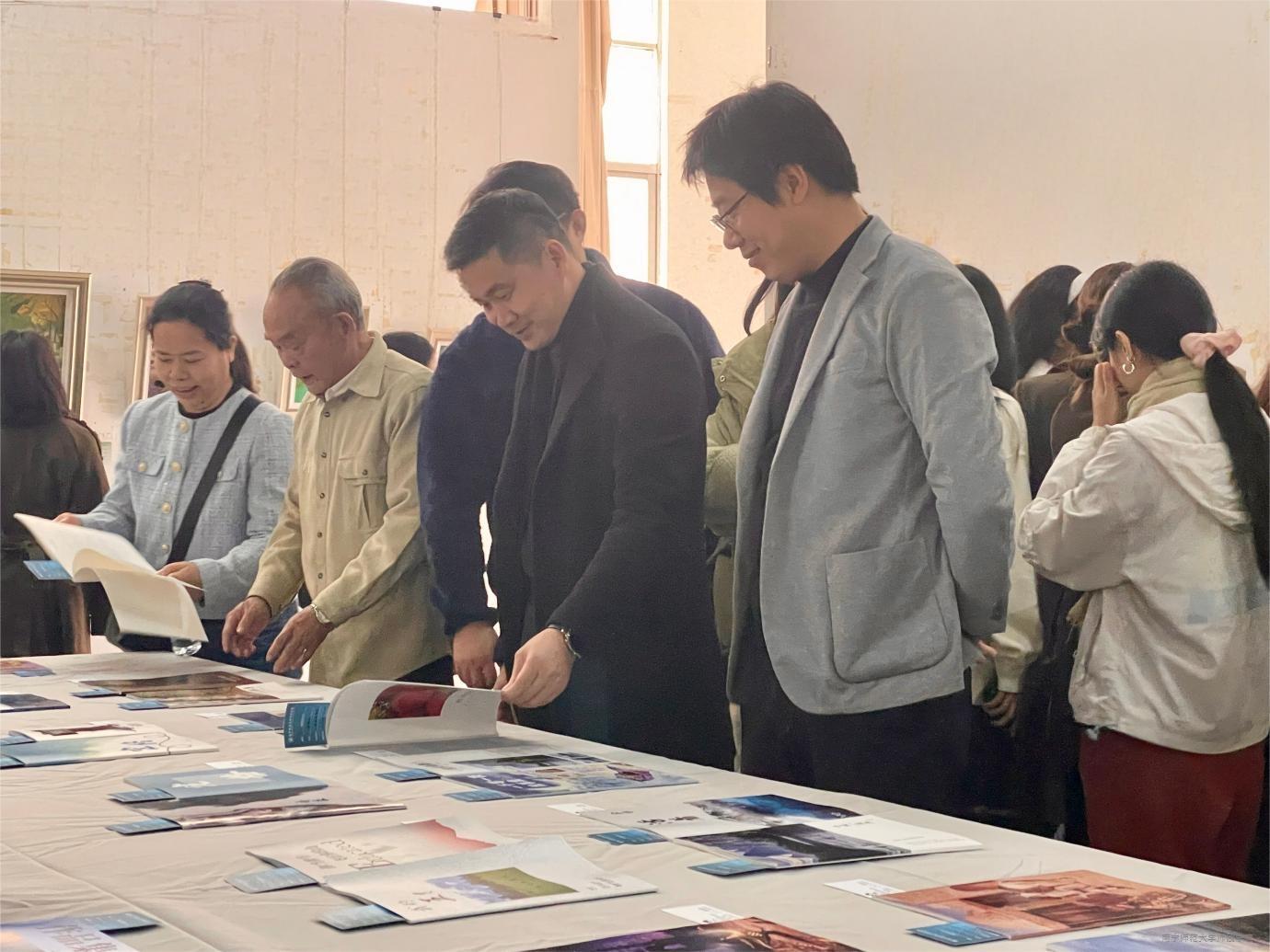 汇报展暨采风展现场,学校领导仔细欣赏作品,详细了解美术学和视觉传达设计专业发展和教学特点等情况,还与同学们进行亲切交流,鼓励同学们在今后的学习中继续保持对艺术的热爱与执着,勇于尝试不同风格与媒介,不断提升作品的思想深度与艺术感染力。