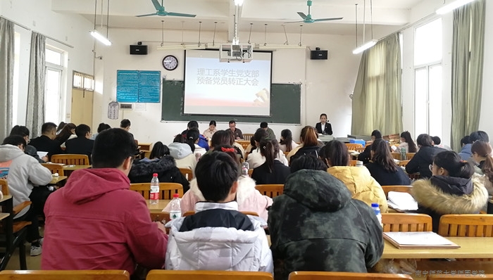 12月23日,理工系学生党支部在教学楼3-307教室召开预备党员转正暨接收预备党员大会。理工系学生党支部书记邹修文和理工系学生党支部全体党员及11名党员发展对象参加了会议。