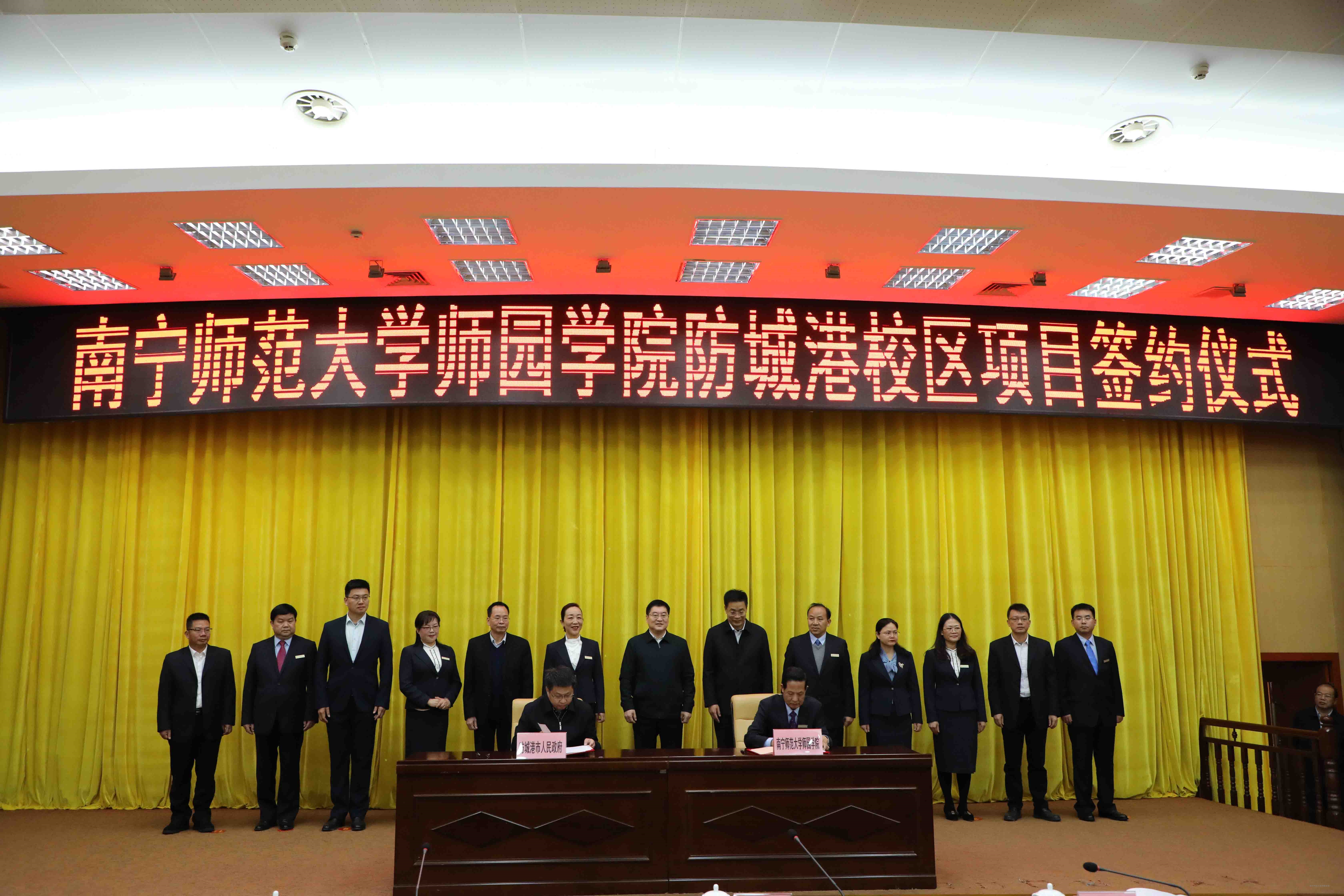 12月25日上午,我院防城港校区建设项目签约仪式在防城港市举行,学院董事长梁仲荣,院长李珏,党委书记梁春贤率领我院中层及以上领导干部赴防城港市参加签约仪式。防城港市委书记李延强,市长班忠柏,市政协主席黄强余,市委常委、副市长陆辉,副市长廖云及相关市政府部门负责人出席签约仪式,防城港市副市长罗真主持签约仪式。