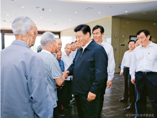 2019年5月20日至22日,中共中央总书记、国家主席、中央军委主席习近平在江西考察,主持召开推动中部地区崛起工作座谈会并发表重要讲话。这是习近平在赣州市于都县中央红军长征出发纪念馆会见于都县的红军后代、革命烈士家属代表。 新华社记者 鞠鹏/摄