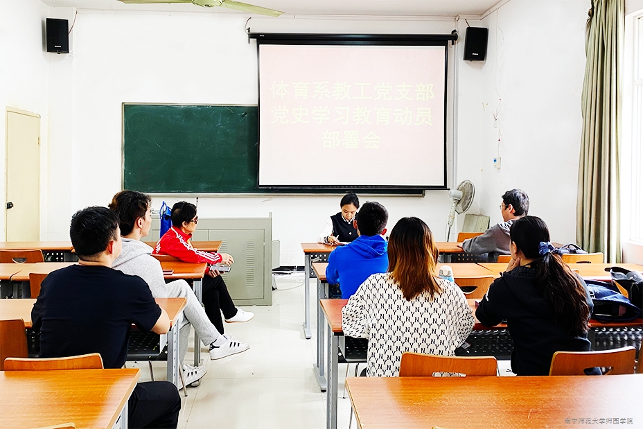 4月29日中午,体育系教工党支部在文体楼204教室召开党史学习教育工作布置会。会议由体育系党总支书记陈秋燕主持,全体教工党员参加会议。