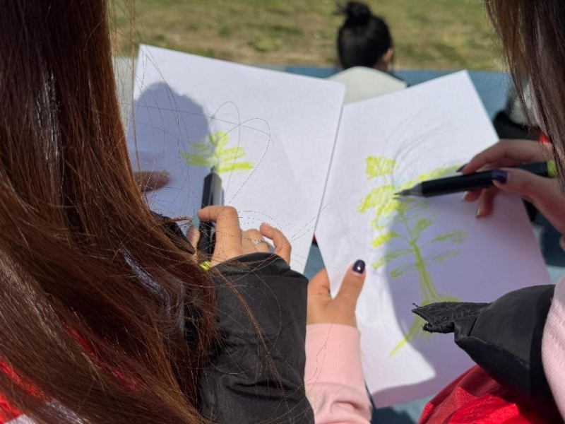 “大自然是心灵的疗愈师,而绘画是心灵的表达者。”活动伊始,王彤老师向同学们介绍了本次活动的意义,“通过绘画,同学们可以将内心的所思所感转化为具体的画面,这是一种独特的心理表达方式,有助于缓解心理压力,提升心理健康水平。”绘画过程中,同学们不仅沉浸在自己的创作中,还互相交流心得。他们分享着绘画技巧,讨论着色彩搭配,甚至互相帮忙调整画面的构图。这种交流不仅增进了同学们之间的友谊,也让大家在艺术的氛围中感受到了集体的温暖和支持。