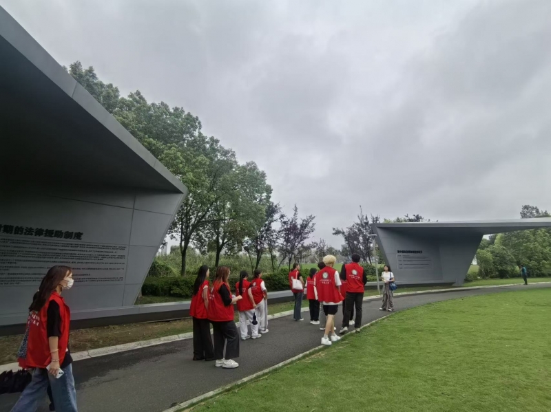 活动伊始,在常州市法律援助主题公园的法治长廊上,辅导员王彤老师结合园区内的法治景观,开展了一场生动的法治知识宣讲。从法律责任的内涵到生活中常见的法律案例,用通俗易懂的语言,将抽象的法律条文转化为贴近生活的场景故事,让参与同学对法律知识有了直观且深刻的认识,为后续的实践环节奠定了扎实的理论基础。
