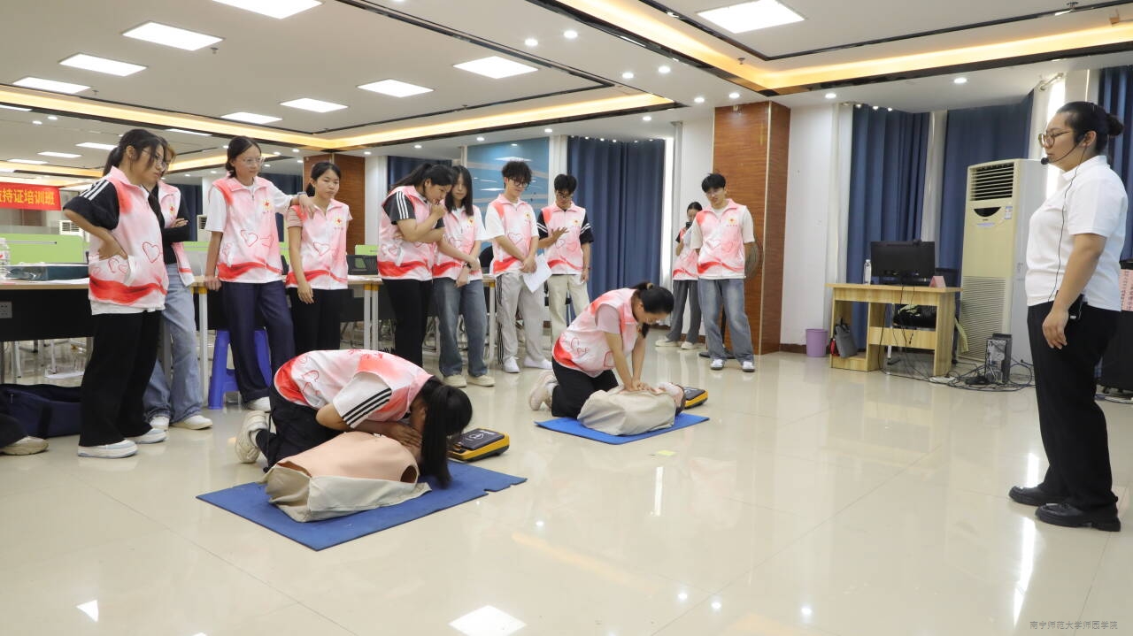 上午,广西红十字会救护培训中心高级培训师黄佼甜老师开展心肺复苏专题培训。培训过程中,黄老师围绕心肺复苏应急救护原则等核心内容,着重介绍了人工呼吸、心肺复苏(CPR)按压手法及自动体外除颤仪(AED)操作的全流程。